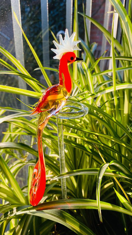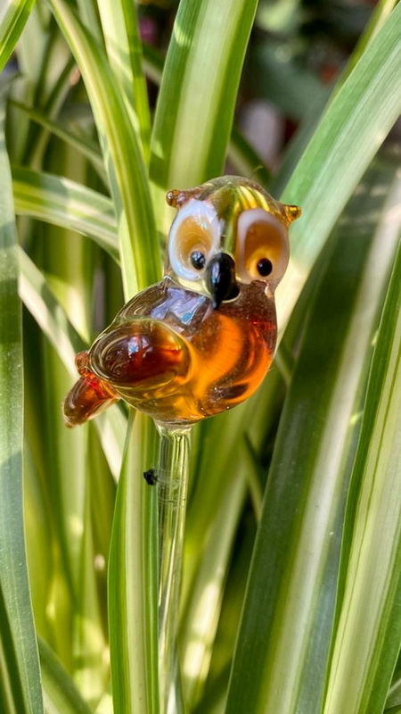 Sind so kleine Dinge, die so viel Freude machen. Manchmal braucht man nicht viel, um das Herz zu erfreuen. Sonja-S sagt dazu: "Solche mundgeblasenen Orchideenstäbe, hier aus der Glasbläserei Lauscha, kennen sicher viele. Sie sollen einen schweren Blütenzweig stützen, deshalb haben sie eine Schlaufe. Die Großen mit der Schlaufe habe ich geschenkt bekommen. Es gibt sie aber auch kleiner, einfach so als Schmuckstecker. Davon habe ich mir die kleine Eule und die Schnecke selbst gekauft. So habe ich einen bunten Hingucker wenn die Orchidee nicht blüht :). Für die Fotos habe ich sie in die Grünlilie gesteckt:"