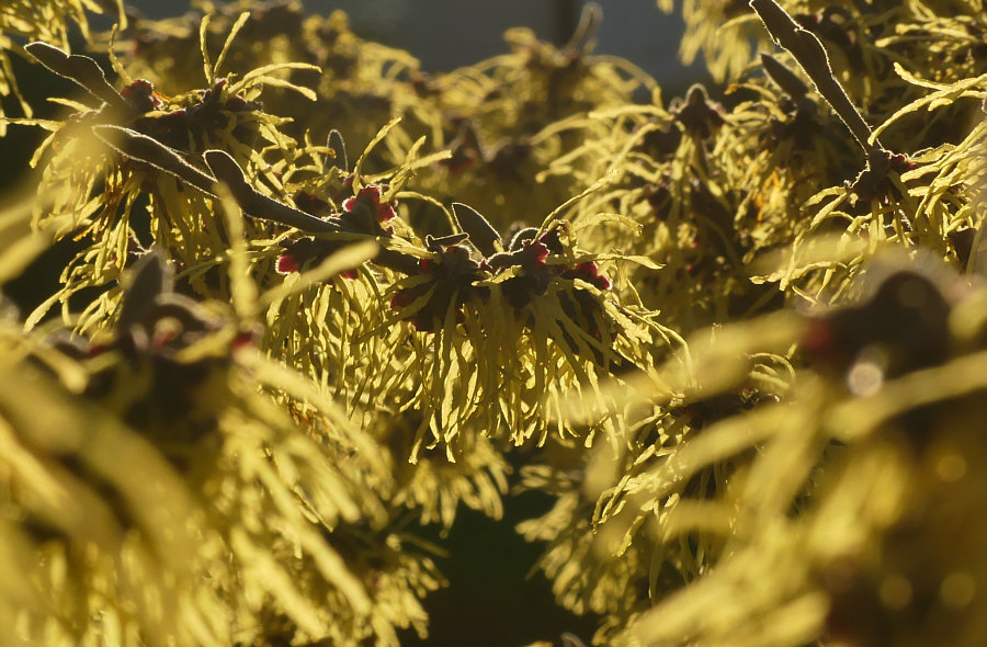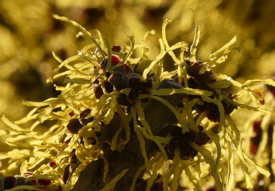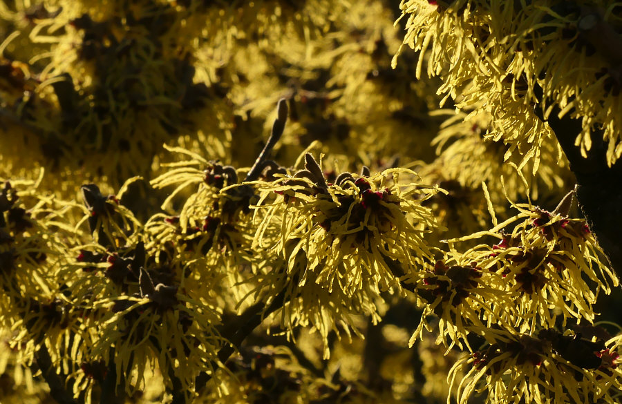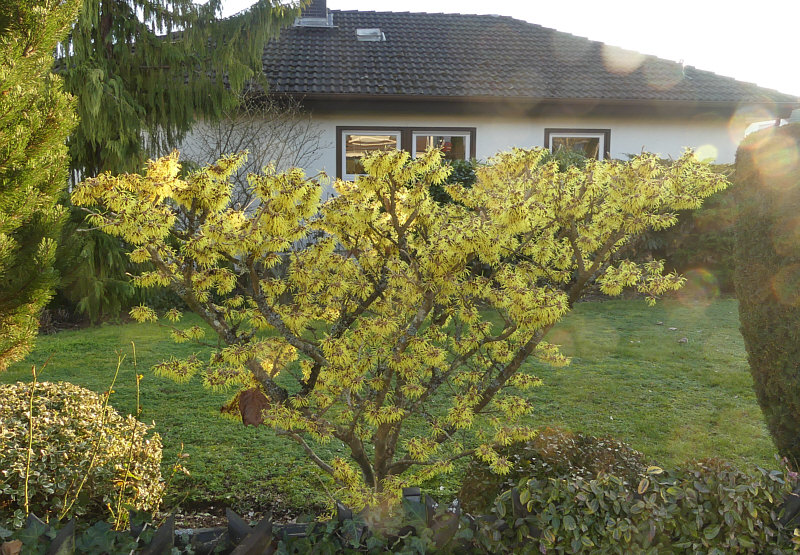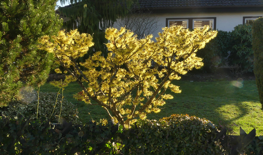 Am Sonntag im Nachbarort ... ![]() ... eine Zaubernuss, Aber es ist schon 16.49 Uhr ... ![]() ... und nur noch ein paar Spitzen des Strauchs liegen in der Sonne. Egal ... fotografiert wird trotzdem: ![]() ![]() ![]() Aber natürlich bin ich einen Tag später nochmal dort ... ... und diesmal früher, um 16.13 Uhr ... und ja, das hat genau gepasst, denn der gesamte Strauch leuchtet in der Sonne: ![]() ![]() Ich hab noch nie eine so toll blühende Zaubernuss gesehen. Da musste ich natürlich noch mal ganz in Ruhe bei Sonne fotografieren: ![]() ![]() ![]() ![]() ![]() ![]() ![]() ![]() ![]() |