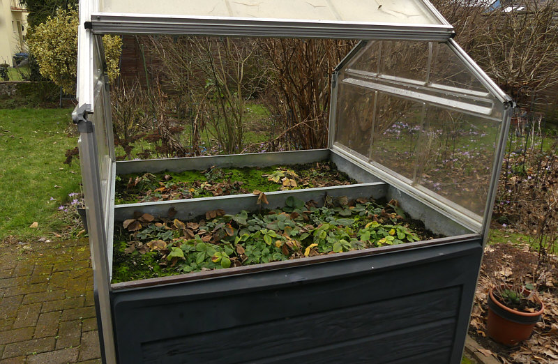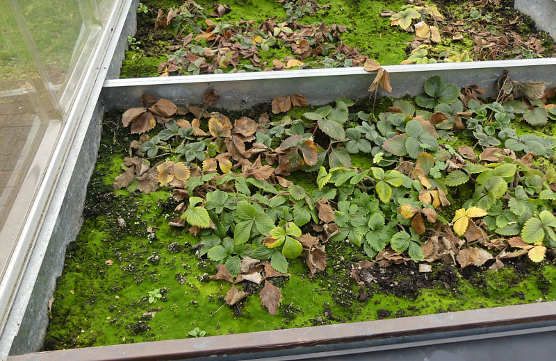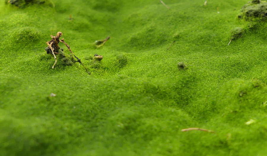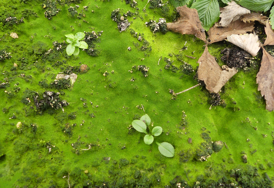 Das ist unser kleines schon älteres Gewächshaus ... ![]() ... bei Frost ... und ... ![]() ... wenn es aufgetaut ist. Den ganzen Winter war es natürlich geschlossen ... ... doch nun, wenn es milder ist, kanns geöffnet werden. ![]() ![]() Im Gewächshaus überwintern verschiedene Erdbeerpflanzen. Doch um diese geht es gar nicht ... ... denn wir waren ganz überrascht ... ![]() ... was sich da Grünes zwischen den Pflanzen entwickelt hat. ![]() Das kann nur Moos (oder Algen oder beides) sein ... auch auf der anderen Seite des Hauses ... ![]() ... und als ich das sah, musste ich natürlich zurück ins Haus gehen, meine große Kamera holen ... ![]() ... um dieser neuen kleinen grünen Wunderwelt ganz nah zu sein. ![]() ![]() ![]() ![]() ![]() ![]() Und dann hab ich auch noch ... ![]() ... einen Mann entdeckt, der mit seinem kleinen Boot durch diese grüne Welt fährt. |