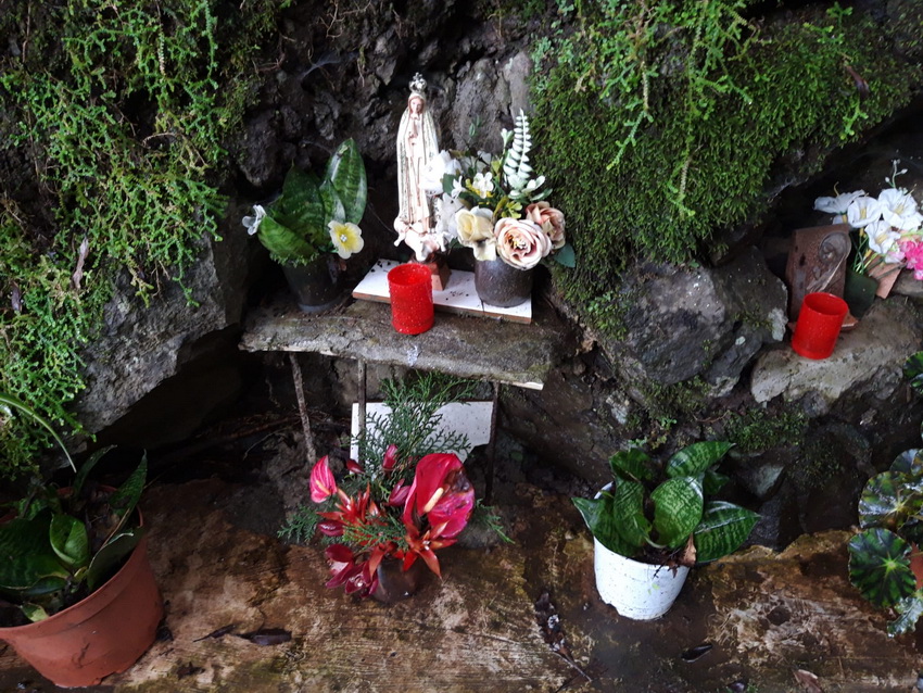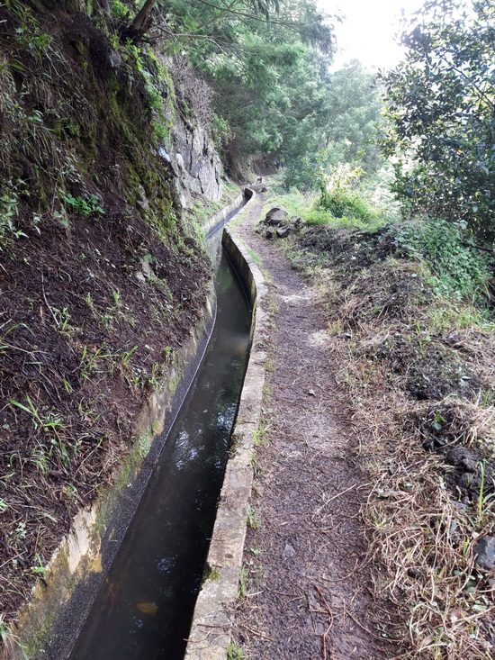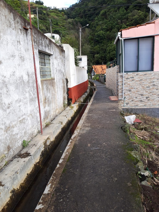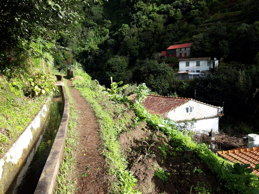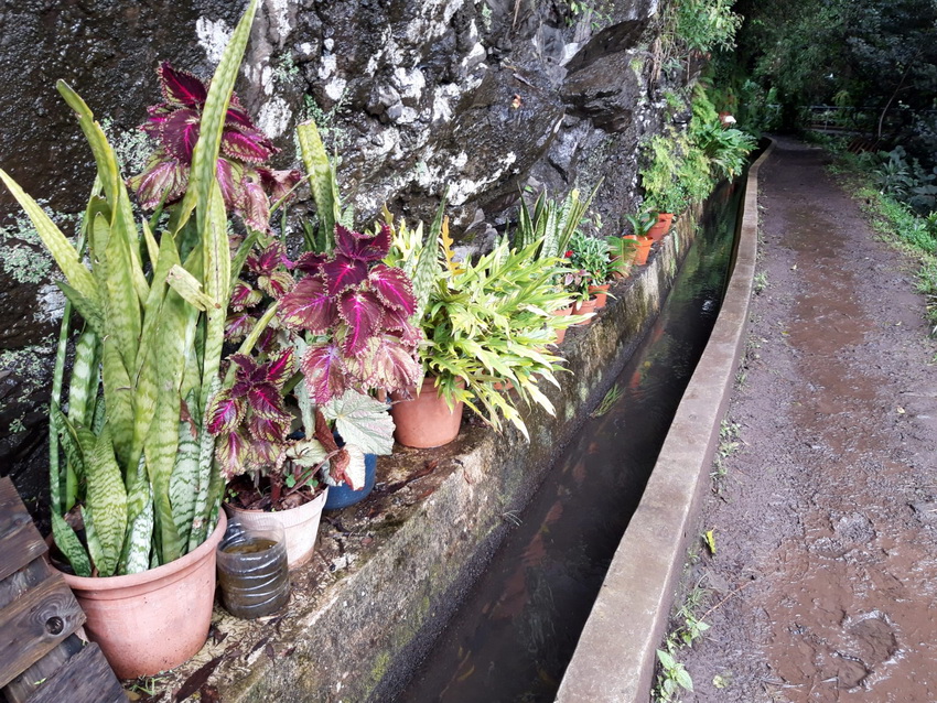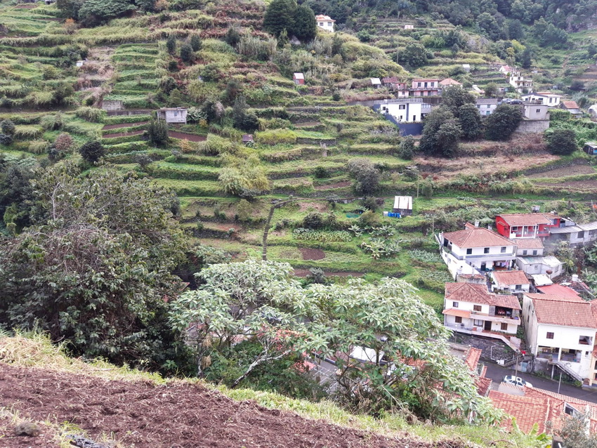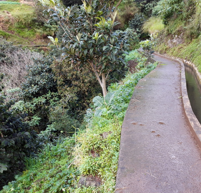 Mit Angelika V. nach Madeira Folge 5 ( Folge 1 - Folge 2 - Folge 3 - Folge 4) ![]() Ein Morgen, wie gemacht für eine leichte Wanderung. ![]() Los geht's. ![]() Der Weg ist schön eben und teilweise betoniert. Da es am Tag zuvor geregnet hat, gibt es aber an den unbefestigten Stellen Pfützen, Matsch und Rutschgefahr. ![]() Auch die schmalste Stelle wird noch für Gemüseanbau genutzt. Auf diesem Bild wachsen auf weniger als 1m Breite Kohl und Kartoffeln. Und daneben geht es gleich steil bergab. ![]() Zuckerrohr. ![]() Typischer Anblick unterwegs: verstreute Häuser und Gemüsegärten. ![]() Aus diesem Bild ... ![]() .... ist dieser Ausschnitt, der deutlich macht, was für eine Schufterei es ist diese Terrassen anzulegen und treppauf treppab die kleinen Parzellen zu bearbeiten. Die Bewohner haben meine absolute Hochachtung dafür. Oberhalb der weißen würfelförmigen Häuser kann man auch die Levada erkennen. ![]() Herrlich im Sonnenschein am leise plätschernden Wasser entlang. ![]() Eingearbeitete Trittsteine damit man trockenen Fußes durch den Wasserlauf kommt. ![]() Mitten durch eine Ansiedlung hindurch. ![]() Wenn man hier wohnt, empfiehlt es sich gut zu Fuß zu sein. ![]() Und überall sind liebevoll Blumen gepflanzt. ![]() ![]() Auch auf dem Betonmäuerchen der Levada ist Platz für Blumen. ![]() ![]() ![]() Und in den Felsnischen findet sich auch noch ein Plätzchen für ein paar Heilige. ![]() Geräuschkulisse hier: Hähne krähen, ein Hund bellt, Wasser plätschert, Vögel zwitschern und sonst nichts. ![]() 3 Frauen bei der Feldarbeit. ![]() Unbefestigt und schmal. Bei Gegenverkehr muss einer auf den Betonmauerrand ausweichen. ![]() Die Neugier hat uns noch durch den Tunnel gezogen, aber einige 100m danach sind wir umgekehrt und zurück zum Parkplatz gegangen. ![]() Immer wieder plätscherndes Wasser am Berg. ![]() Viel Grün ![]() Und Blüten. [ wird fortgesetzt ] |