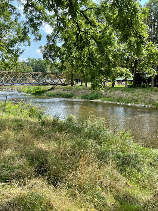 ![]() Die Aufgabe ist: (Du sagst mir, wo ungefähr du wohnst und ich suche dir eine Straße aus, die ich nicht kenne und du vielleicht auch nicht. Du fährst dorthin, steigst aus dem Auto aus oder vom Fahrrad, stellst den Timer auf dem Handy und dann hast du 30 Minuten Zeit, zu fotografieren. Von all den Bildern suchst du dann 10 aus, die ich zeigen werde.) In dieser Folge: Margot Margot schreibt und zeigt: Heute besuchen wir Bad Neuenahr im Ahrtal, bekannt durch "the Queen of tablewaters", denn hier entspringt die 1842 entdeckte Apollinarisquelle und bekannt natürlich durch die wunderbaren Rotweine. Besonders im Herbst verzaubert das bunte Laub der Weinberge das Tal. Doch diese sind nicht das Ziel der 30 Minuten Fotochallenge. Die Fototour führt uns heute in die Lindenstraße. ![]() ![]() Die Lindenstraße liegt am Ufer der Ahr. Hier ein Blick von der anderen Seite auf die begrünte Straße. ![]() Ich bleibe nicht unbeobachtet. Auch hier breiten sich Nilgänse aus. ![]() Wir wechseln das Ufer und sehen den Standort der vorherigen Fotos. ![]() Fußgänger freuen sich besonders im Sommer über diesen schattigen Weg entlang der Lindenstraße. ![]() Wer es lieber etwas wärmer hat, findet hier auf dieser Bank einen Platz an der Sonne mit Blick auf‘s gemütlich fließende Wasser. Hier lässt es sich gut entspannen und mir kommt der afrikanische Spruch in den Sinn, der mich schon lange durch mein Leben begleitet: Wende dein Gesicht der Sonne entgegen und die Schatten fallen hinter dich. ![]() Es gibt schöne alte Villen neben modernen Bauten. ![]() Auf‘s Wasser blickend können die Gedanken schweifen. ![]() Das andere Ende der Lindenstraße sieht so aus. Über eine Brücke gelangt man auf die andere Seite der Stadt. Dort ist das Kurviertel mit Park und Kurhaus. ![]() Hier finden wir auch diese evangelische Kirche, neben der die Fußgängerzone beginnt. ![]() Überall in der Stadt finden sich diese bunten Blumenkübel, hier im Hintergrund das Kurhaus. |