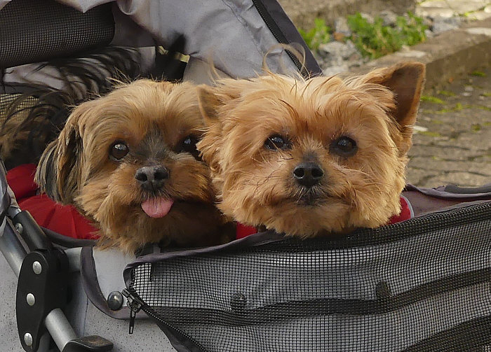 Vor drei Tagen beim Spaziergang ... ein älterer Mann mit Kinderwagen. ![]() Aber ohne Kinder drin ... stattdessen zwei Hunde. Ist ja auch kein umfunktionierter Kinderwagen, sondern ein spezieller Hundewagen/Hundebuggy. Die beiden Hunde sind nicht mehr so gut zu Fuß ... aber raus müssen sie dennoch. Also fährt der Herr die Hunde im Hundebuggy bis an den Waldrand und dort dürfen sie dann raus ... sie bleiben auch schön im Wagen sitzen, ganz egal wer oder was ihnen begegnet. Da musste ich natürlich mal näher ran gehen :). ![]() Und noch ein Bild bitte: ![]() Natürlich durfte Beate den beiden ein paar Streicheleinheiten geben :). |