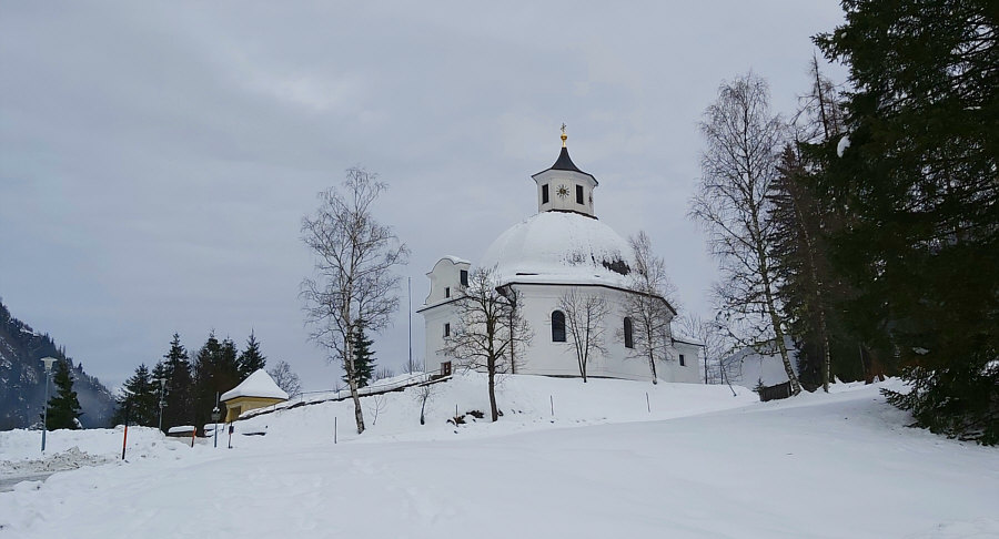 Das ist die Böcksteiner Kirche im Schnee.