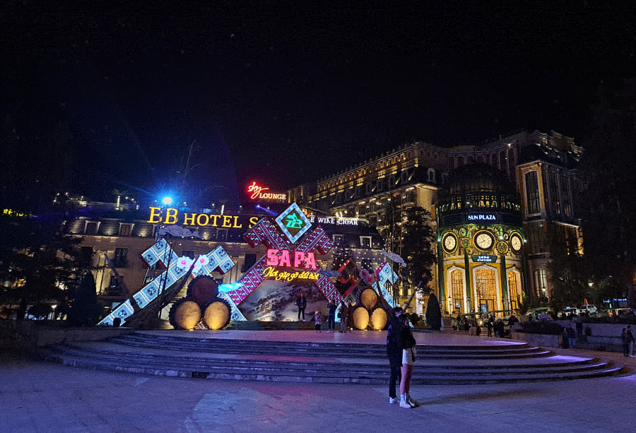 ![]() Mit Schpatz nach Vietnam ... Folge 4 (Folge 1, Folge 2, Folge 3) Heute ist "ab in den Bus und weiterfahren"-Tag ... wir haben 310 km vor uns. Geht ja noch. Aber keine Autobahn ... es geht auf normalen Straßen in Richtung Berge. Unser Ziel ist Sa Pa, das liegt ganz im Norden von Vietnam. Sa Pa ist eine wichtige Marktstadt in diesem Gebiet, mit Bedeutung für die in der Umgebung ansässigen Bergstämme der Hmong, Red Dao und Tay. Und das ist unser Wahnsinnsausblick aus dem Hotelfenster: ![]() ![]() Jetzt erstmal stärken nach der Busfahrt ... ![]() ... in diesem Lokal gibt es Abendessen. Nach dem Abendessen erkunden wir noch ein wenig die Stadt. 1 ![]() Das ist der Bahnhof, von hier aus kann man auf den höchsten Berg Indochinas fahren, den Fansipan. So sieht der Bahnhof von außen aus: ![]() Das Tor zur Stadt ... ![]() ... mit dieser Beleuchtung: ![]() Werbung für die Seilbahn zu dem erwähnten hohen Berg. Immerhin 3143 Meter hoch ... während Sa Pa auf 1600 Meter Höhe liegt. ![]() Der Schriftzug der Stadt. Wir gehen mal ein bisschen weiter weg ... ![]() ... hier sieht man den Schriftzug, ein Hotel und auch den Bahnhof. Wer etwas essen will, hat bei diesem Imbiss die Qual der Wahl ... ![]() ... aber wir sind ja noch satt vom Abendessen. Wir gehen in diese hell erleuchtete Straße ... ![]() ... und finden diese vielen tollen Lampen: ![]() Auch hier kann man essen, das ist ein Restaurant. Laternen begleiten weiter unseren Weg ... ![]() ... das ist eine kleine Gasse, die so wunderbar beleuchtet ist. Den Abschluss macht diese Kirche ... ![]() ... ... die Stone Church, eine kleine katholische Kirche. So sieht sie bei Tag aus ... so könnte sie aussehen ... ![]() ... doch als wir hinkommen, sieht sie so aus: ![]() In der nächsten Folge werden wir dann auch sehen, wie sie von innen aussieht. [ wird fortgesetzt ] |