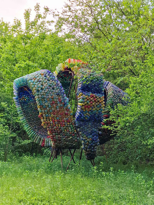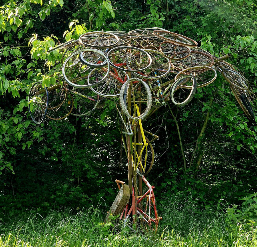 Die Kunstinstallationen im Parco del Mincio in Mantua. Sie sind nicht ohne Kritik, nicht ohne Alterungserscheinungen und auch nicht ohne Vandalismus durch die Zeit gekommen. Aber diese Kunst ist "anders" und ich zeige hier gerne Dinge, die ein wenig anders sind. Zeigen kann ich diese, weil Moni mit dem Wohnmobil gerade dort unten ist. Das, was an Kunst noch da steht und auch noch einigermaßen aussieht, zeige ich einfach mal: Fange ich doch mal mit diesem Kunstwerk an ... ![]() ... das da mitten im Grünen steht. Näher betrachtet ... ![]() ... sind das alles Plastikflaschen in verschiedenen Farben. "Lichtwolke" heißt das Kunstwerk ... eine Installation zum Schutz der Umwelt. Sie besteht aus 3579 recycelten farbigen Plastikflaschen. Diese Lichtwolke will ein Hinweis auf die Konsumgesellschaft und die globale Notwendigkeit des Recyclings sein. Sie ist auch eine Einladung, sich selbst zu recyceln: seine Ideen und Überzeugungen. PET-Flaschen sind sehr leicht und widerstandsfähig, transparent und farbenfroh. Und deswegen ist dieses Kunstwerk auch noch gut in Schuss ... Plastik vergeht so schnell nicht. Der Künstler meint "der farbige transparente Kunststoff (wie Glas) interagiert und spielt mit dem Licht. Die Flaschen werden zu leichten Transparenten, ein Erlebnis aus Luft und farbigem Licht." Diese Installationen wurden im Rahmen von drei Künstler-Wettbewerben ausgewählt. Weiter gehts zu den Kabeln ... ![]() ... oder genauer: das ist der "Baum der Freude". "Boden gut machen" ... ![]() ... heißt dieses Teil. Nicht alle Kunstwerke existieren noch und nicht zu allen Kunstwerken konnte ich Infos finden. Da machen wir uns halt einfach unsere individuellen Gedanken ... ![]() ... beim Betrachten von Form und Farbe. Viele der Skulpturen wurden aus kostengünstigen (auch recycelten) Materialien hergestellt, sind aber dennoch für den Einsatz im Freien geeignet. Hier umspannt Weiches ... ![]() ... einen harten Kern. Rechts erkenne ich einen Katzenkopf, auch wenn das vielleicht gar nicht so gemeint war. Ach, nennen wir die Skulptur doch einfach "Stanislaus" ;). Und hier sind wir ... ![]() ... irgendwo zwischen Grillrosten und Schablohnen gelandet. Ist Euch schon mal der Spaten vom Stiel abgefallen ? Wunderbar ... wieder ein Teil mehr für diese Kunstwerk: ![]() Und schmeisst ja Eure alten Fahrräder nicht auf den Müll ... ... denn die sind Kunst: ![]() Der Baum der freien Fahrräder. Die Künstlerin sagt, jedes Material kann und sollte wieder verwendet werden, nicht nur, um zu einer nachhaltigeren Welt beizutragen, sondern auch, weil kreatives Recycling wirklich überraschende Ergebnisse liefern kann. Die Künstlerin betrachtet sich als Neuschöpfer. Tatsächlich wurde hier ihr Werk aus recycelten Fahrrädern ganz ohne Zusatz von Farben hergestellt. In dem Objekte werden verschiedenen Formen, Größen und Farben so zusammengesetzt, wie sie sind. Und wer mit dieser Kunst nichts anfangen kann ? Der setzt sich einfach so auf die Wiese, dass er die Kunst im Rücken hat und genießt die Natur. Und bei Langeweile einfach umdrehen ;). |