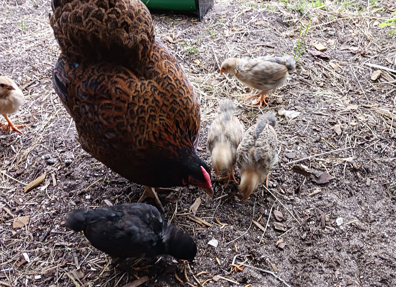 Die Zwerg-Wyandotten von Angelika V. - Teil 2 (Teil 1 gabs hier, Vorabinfo gabs hier): Am 30. April wurden die Kleinen geboren ... jetzt geht es mit dem 13. Mai weiter, Angelika V. zeigt und schreibt: ![]() "Kommt mal alle her. Ich zeige euch jetzt, wie Futtersuche geht." ![]() "Kükenfutter.... wie langweilig. Hier gibt es bestimmt etwas Besseres." ![]() Die Tante (vorne) kommt und schaut nach dem Rechten. ![]() Wie groß die Flügel schon geworden sind! ![]() Erster Ausflug in die große weite (Garten-)Welt. "Bleibt schön zusammen und immer hinter mir." ![]() "Aufpassen, dass wir keinen verlieren." ![]() Hier sieht man, dass der Puschelpopo auch schon wächst. ![]() ![]() ![]() ![]() Zwei Tage später: ![]() "So Kinder, heute spielen wir mal Verstecken." ![]() "Ein, zwei, drei, vier, Eckstein. Alles muss versteckt sein." ![]() ![]() ![]() ![]() ![]() "Kopf runter. Jetzt wird geschlafen!" Eine Woche später (Bilder von gestern): ![]() Die Mama pickt mir die Mehlwürmer aus der Hand. Sie lässt sie dann auf den Boden fallen ... ![]() ... damit die Kleinen sie aufpicken können. ![]() ![]() "Bäh, Kükenfutter ist langweilig. Ich will das Gleiche wie die Großen" ![]() "Also Kinder, was ist denn das für ein Benehmen? Es ist genug für alle da." ![]() ![]() ![]() ![]() ![]() |