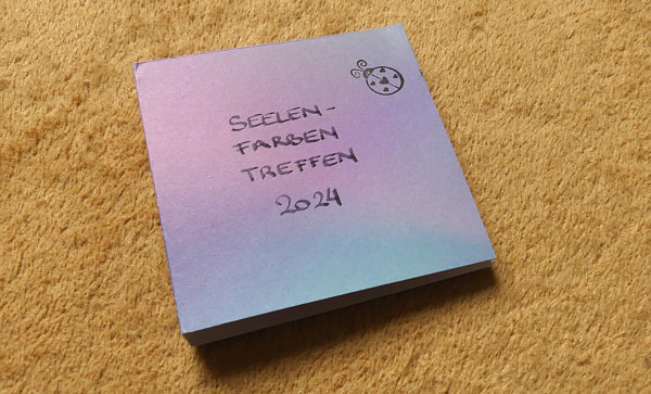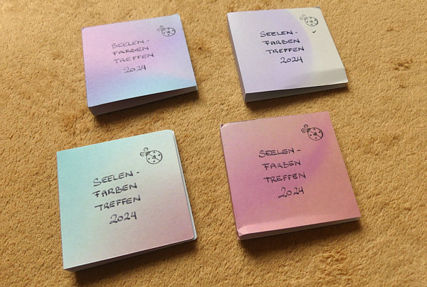 Seelenfarben-Treffen, Teil 1 Heute gibt es erst mal zwei Gruppenbilder: ![]() ![]() Die Einzelbilder mit Namen folgen in ein paar Tagen. Jeder der Teilnehmer bekam ein kleines Geschenk: ![]() ![]() Wenn man die Heftchen aufklappt ... ![]() ... findet man einen Spruch und einen Knopf. Bei Knopf klingelt sicher der Name "Pat" in den Ohren ... genau ... Pat, die auf der Insel Zakynthos in Griechenland lebt, hat für jeden Teilnehmer einen Knopf gebastelt. Insgesamt waren es 30 Stück, die ich natürlich heute alle zeige: