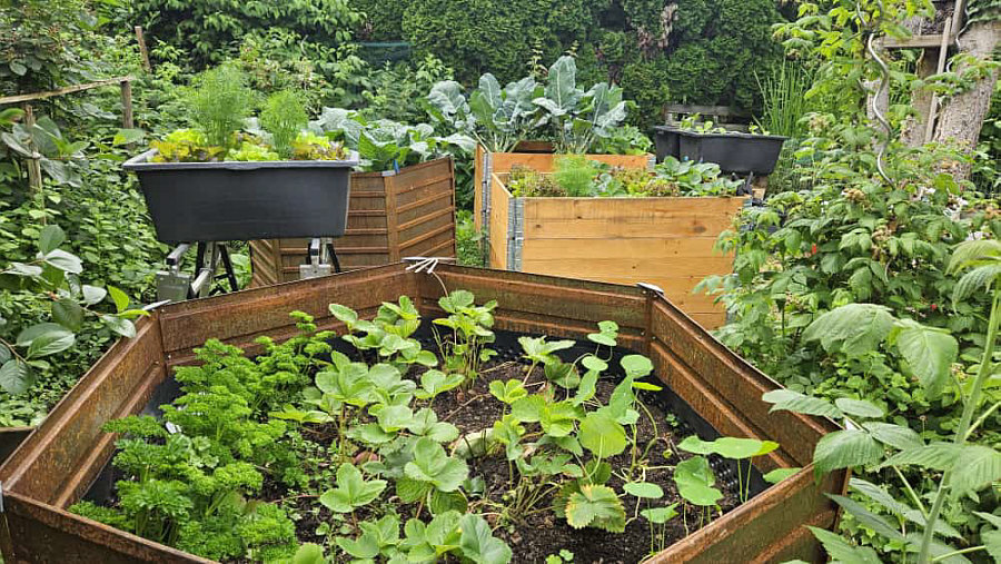 ![]() ... und danach nach den Hortensien in Juttinchens Garten. Dann kommt der Gemüsegarten mit diversen Hochbeeten zur Selbstversorgung. Mit Brokkoli, Kohlrabi, Salat und vielen Kräutern. ![]() Dann gehn wir rein ...