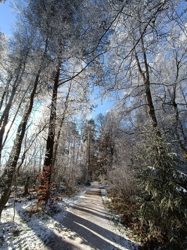 Sie sagt "um diese traumhafte Winterlandschaft genießen zu können, musste ich 70 km fahren."