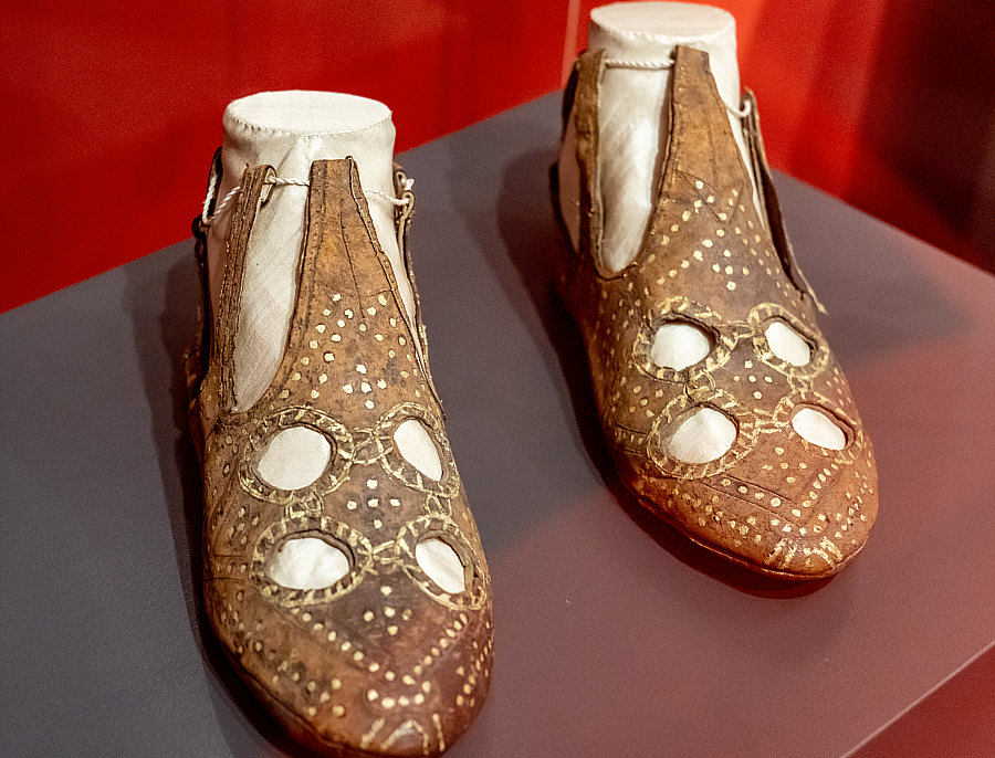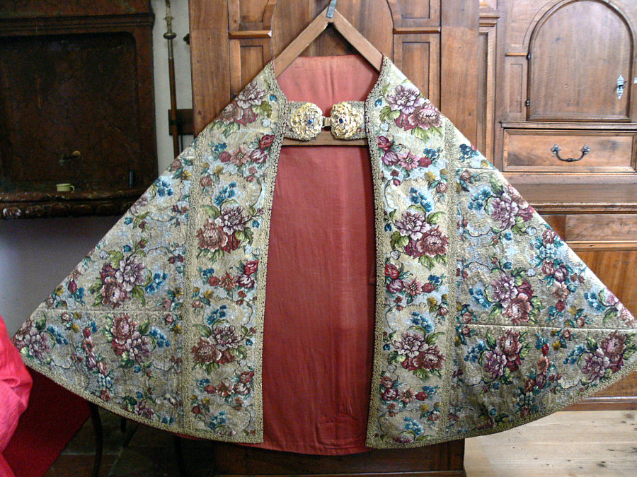 Ich denke gerade an Sr. Maria ... warum, das erzähle ich später. Kleiner Schwenk zu der Kirche in Mondsee ... ![]() ... die ich gestern im Lichtblick gezeigt hatte. Ich hatte bei der Kirche ein bißchen in den Bilderordnern bei Wikipedia gestöbert und das da gefunden: ![]() In der Sakristei (Nebenraum in der Kirche, der zur Vorbereitung der Geistlichen auf den Gottesdienst und zur Aufbewahrung der für den Gottesdienst benötigten Gegenstände dient) der Kirche ist dieses "Milleniumsornat" zu finden ... hergestellt 1748 zur 1000-Jahr-Feier des Klosters. ![]() Ein Ornat ist die festliche Amtstracht eines Geistlichen, Herrschers oder hohen Beamten, die bei feierlichen und repräsentativen Anlässen getragen wird. Die Bezeichnung Ornat wird auch als Zusammenfassung der für den Gottesdienst verwendeten Paramente verwendet. Paramente sind die im Kirchenraum und in der Liturgie verwendeten Textilien, die oftmals künstlerisch aufwendig gestaltet sind. Einige Klöster fertigen Paramente an und nehmen auch Ausbesserungsarbeiten vor. Womit wir bei Sr. Maria wären ... denn die arbeitet in der Paramenten-Stickerei ihres Klosters ... ein one-woman und Vollzeit-Job. Zurück zur Kirche in Mondsee ... hier ... ![]() ... zeigt Pfarrer Wageneder die Ornate in den Sakristeischränken. In der Hand hält er einen besonderen Schuh: ![]() Das ist ein Pontifikalschuh ... Pontifikalschuhe bildeten zusammen mit den Pontifikalstrümpfen die pontifikale Fußbekleidung von Bischöfen und Äbten, die beim Pontifikalamt getragen wurde. Sie werden heute, ähnlich wie die Pontifikalhandschuhe, nur noch in der außerordentlichen Form des Römischen Ritus verwendet. Das sind auch solche Schuhe ... ![]() ... die sind im Dommuseum in Hildesheim zu finden und aus Leder, Goldblechstreifen und Leinen gefertigt. Ich bin manchmal selbst erstaunt, was mir begegnet, wenn ich mich auf die Suche nach weiteren Details begebe :). |