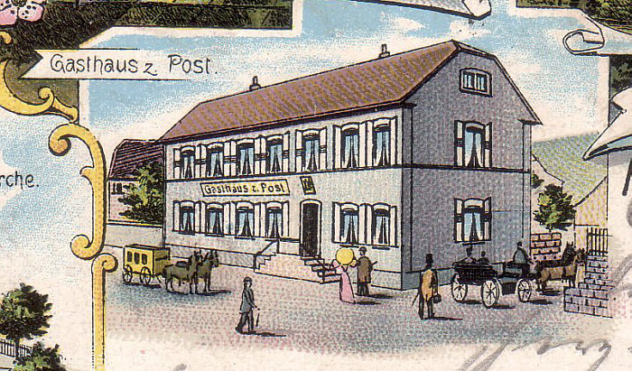 Dann schauen wir doch mal nach, ob es die Gebäude auf den Postkarten noch gibt. Seit dem Druck der Karten sind ja 120 Jahre vergangen. Karte Nummer 1 ![]() Der Bahnhof ... ![]() ... ich kann mich noch an Fahrkartenschalter und Warteraum erinnern. An die kleinen Fahrkarten aus Pappe, in die der Kontrolleur ein Loch rein stanzte. Der Bahnhof steht natürlich noch ... aber er hat keine Funktion mehr und ist ein Privathaus. ![]() Die Gastwirtschaft Trautmann ... ![]() ... war gegenüber vom Bahnhof zu finden. Später war dort ein Haushaltswarengeschäft drin. Aber auch das ist 30 Jahre her ... heute ist das ein ganz normales, inzwischen aufgestocktes Haus: ![]() Karte 2 ![]() Die Kirche ... ![]() ... steht natürlich noch ... das ist die katholische Kirche: ![]() Gottesdienste finden nicht mehr im Kirchengebäude selbst statt, sondern im Anbau, der rechts davon zu sehen ist. Die Wirtschaft Paul Stift ... ![]() ... hab ich selbst nie kennen gelernt ... nur durch die Tatsache, dass die Kirche dahinter ist, fand ich das Haus: ![]() In diesem Bild ganz rechts ... zu dem Haus kommen wir gleich. Karte Nummer 3 ![]() Oben im Bild das Haus rechts am Rand ist das Gasthaus zur Post ... ![]() ... da war bis vor 10 Jahren auch immer noch dieses Gasthaus drin. Dann wurde diese geschlossen und das Haus renoviert: ![]() Schon länger vorher wurde das Haus sehr erweitert. Karte Nummer 4 ... ![]() ... mit dem Schulhaus und Gasthaus und Metzgerei August Ludwig ... ![]() ... wurde eine Herausforderung ... da sind wir mehrfach durch den Ort gefahren und haben eines der Häuser gesucht. Als "altes Schulhaus" kenne ich ein ganz anderes Haus, also muss es ein altes und ein neueres altes geben. Von der Gaststätte hatte ich nie etwas gehört. Die übrigens nach "August Ludwig" einen anderen Namen hatte ... ![]() ... wie diese Karte zeigt. Auch da ist ganz links die Schule ... und dann eine Gaststätte "Balthasar Commercon". Mit tollem Innenhof, Kegelbahn und Tanzsaal. Von allem nie gehört ... und heute gibt es davon auch nichts mehr. Gottseidank steht das alte Schulhaus noch ... ![]() ... sonst hätte ich das Rätsel um die Gaststätte nie auflösen können. Das ehemalige Schulhaus ist ein normales Wohnhaus ... ... und dort, wo die Gaststätte war ... ![]() ... ist heute der Parkplatz vom Rewe-Markt. Zwischen gestern und heute ... Postkarten von damals und Ansichten von heute. |