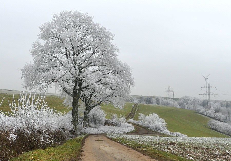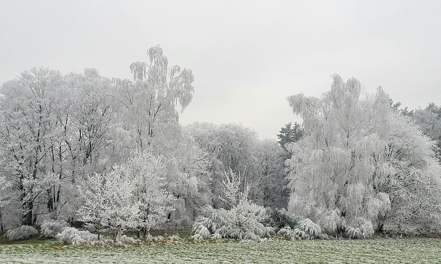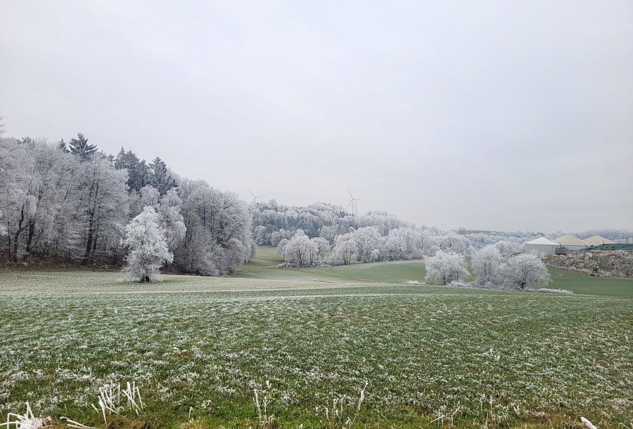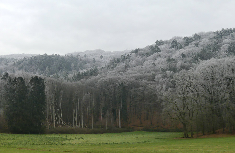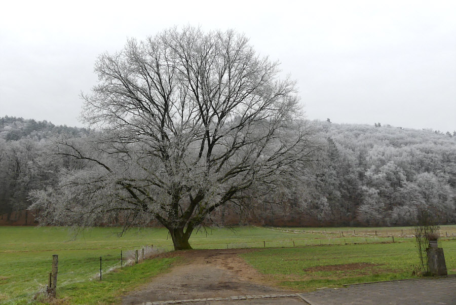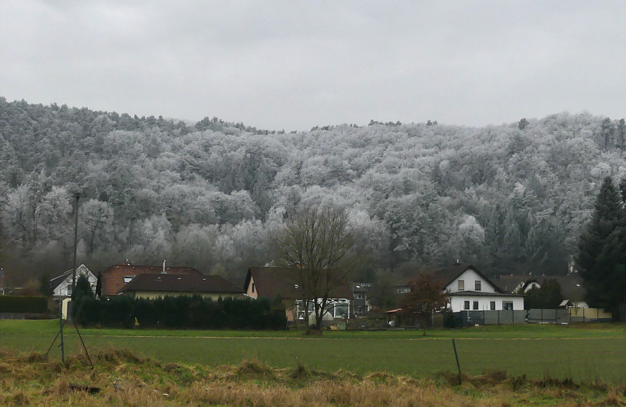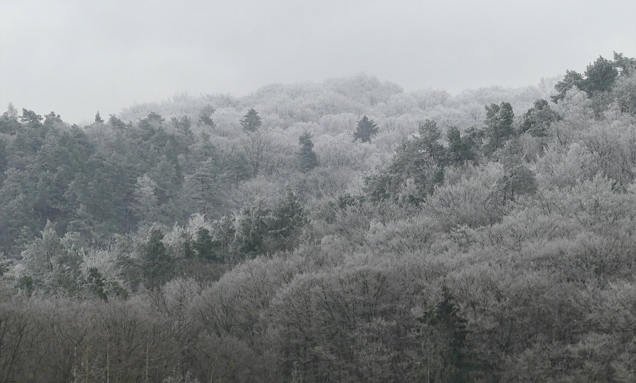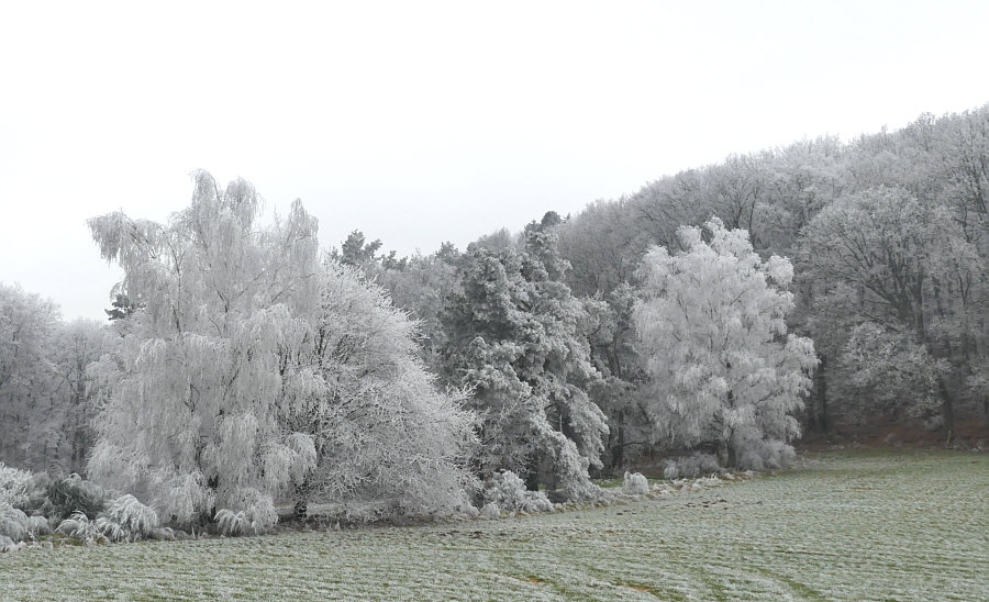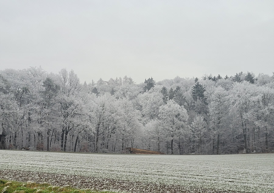 Gestern Morgen bei uns ... ein Raureifmärchen. ![]() Kein Schnee und die Wiesen grün ... aber der Wald ist eine weiße Zauberlandschaft voller Raureif. ![]() Das ist bei uns im Nachbarort. Wir sind dann ein bißchen rumgefahren und ich hab versucht, dieses Naturschauspiel ein wenig einzufangen. ![]() ![]() ![]() Wir sind dann eine kleine Runde mit dem Auto gefahren, in die Richtung, wo der Wald am weißesten leuchtete. ![]() ![]() ![]() Das war echt beeindruckend, wie die Welt sich geschmückt hatte. Quasi zum Abschied des bisherigen kalten Wetters, denn es soll in den nächsten Tagen ja milder werden. Als würde der Winterwald sagen "hey, einen Tag schmück ich mich noch". ![]() ![]() Tanzende Gestalten liefen durch den Wald. ![]() ![]() Der Gedanke daran, wie toll das wohl aussehen würde mit Sonne und blauem Himmel kam erst gar nicht auf, denn dann wäre die weiße Pracht ja ganz schnell verschwunden. So hielt sie sich den ganzen Tag. ![]() Einen ganzen Zaubertag lang :). |