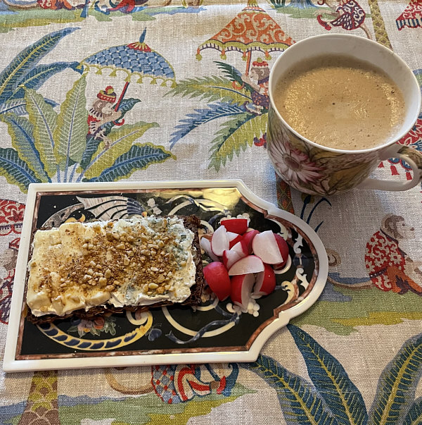 Ist das schön ... ganz aktuelle Bilder, alle von gestern Morgen und alle extra für Seelenfarben fotografiert ... wunderbar :). Weil mich das gerade freut, zeige ich die Bilder auch gleich und sage dann "Folge 1" dazu, denn die dazugehörige Mitmachaktion läuft ja noch bis zum 31. März. Willkommen beim Seelenfärbler-Frühstück Den Aufruf zur Fotoaktion gibts aktuell im Lichtblick. 5 Seelenfärblerinnen haben ganz spontan schon gestern Morgen ihr Frühstück fotografiert: Oktoberfee ![]() Mein Frühstück besteht aus einer Scheibe Haselnuß-Vollkornbrot, bestrichen mit Frischkäse, darauf halb Camembert halb Roquefort, bestreut mit gehackter Walnuß, dazu zwei Radieschen und eine Tasse Haselnuß-Milchkaffee. ~~**~~ Magret ![]() Ich habe gleich mal mein Frühstück aufgenommen, es ist täglich in etwa gleich, heute als Grundlage Hirsebrei (auch Reis, Haferflocken oder Müsli) und Obst und Nüsse nach Vorrat. ~~**~~ Greta ![]() Guten Morgen Engelbert, das ist ein Foto meines alltäglichen Frühstücks: Eine kleine Schale mit Obst - Banane, Weintrauben, Mandarinen (Apfel und Birne gibt es am Abend, da ich sie morgens nicht vertrage). Dann Brot mit Butter und selbst gemachte Marmelade. Dazu trinke ich Tee - viel Tee. ~~**~~ Birgit W. ![]() Heute noch ein Rest vom Ciabatta, von Göga liebevoll belegt mit Lyoner, Schinken und Salami. Und einen Pott Kaffee. ~~**~~ Liane ![]() Schönen Guten Morgen ... ich sitz grad beim Frühstück, die Sonne scheint auf den Küchentisch und ich werde mir jetzt den Hagebuttentee und Marmeladenbrote, mit der köstlichen, selbstgemachten Marillenmarmelade von meiner Freundin, schmecken lassen. Dabei lese ich immer die Fernsehzeitung, damit ich bis abends wieder vergessen habe, was ich mir anschauen will ;). ~~**~~ Fortsetzung folgt natürlich :)). |