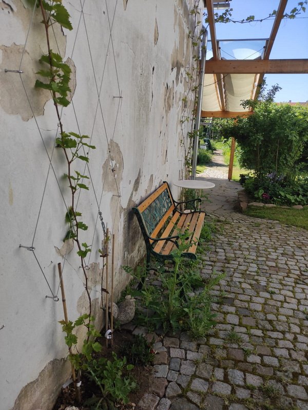 Wo gehn wir denn heute hin ? Wie wäre es mit einem kleinen Gartenrundgang ? Da trifft es sich doch wunderbar, dass Laura Ende April einen solchen gemacht und die Kamera mitgenommen hat. Gehn wir ihr doch einfach mal hinterher ... ![]() Vor der Haustür, noch vor dem Tor zum Garten ![]() Direkt hinter dem Tor sind die Mülltonnen und im Anschluss meine Rosen, die noch nicht blühen. ![]() Der Blick zur Laube ![]() Und zum Schopf. ![]() Hier sieht man den Wein schön. Noch ist er ganz klein ... ![]() Detailaufnahmen Wein. ![]() ![]() ![]() ![]() Der Blick nach rechts. ![]() So sah das vor dem Rasenmähen aus. ![]() Und danach. ![]() Links gehen wir nach unten zum neuen überdachten Sitzplatz. ![]() Sitzplatz von der anderen Seite. ![]() Direkt am Sitzplatz, rechts sind wir gerade hergekommen. ![]() ![]() Hinter dem Sitzplatz geht es weiter. Ab jetzt beginnt die Wildnis, das Gras und die Blumen dürfen stehen bleiben. Die Gemüsebeete sind noch nicht umgestochen und sind Lagerplatz für Erde oder Sand. ![]() Rechte Seite, Grundstück geht bis zum Baum. ![]() Linke Seite. ![]() Blick zurück. ![]() Wildblumen-Wiese. ![]() Zurück am Sitzplatz. ![]() Zurück zum Tor, bevor wir weiterlaufen. Jetzt noch ein paar Bonus-Bilder, ganz aktuell, gestern fotografiert: ![]() ![]() ![]() ![]() |