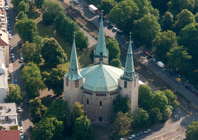 Es gibt einige Zwölfecke in der Architektur auf dieser Welt. Hier ein paar Beispiele: ![]() Das Zwölfeckhaus in Radeberg (70er Jahre) Dieses war ein Experimentalbau in der DDR und wurde als neuartige "punkterschlossene Wohnungsbauserie für den Raum Dresden" entwickelt, um neue Gebäudetypen mit effektiv nutzbaren Grundrissen und bauliche Gestaltungsmöglichkeiten zu erproben. PS: Die Lage der dreieckigen Loggien in den Innenecken des Hauses bewirkte, dass diese von anderen Wohnungen aus nicht einsehbar waren. ![]() Der Wasserturm von Schifferstadt, 1931 erbaut. ![]() Das Schloss Großsachsenheim in Sachsenheim, Kreis Ludwigsburg. Umgebaut zum Schloss bildet die Anlage inzwischen ein fast regelmäßiges Zwölfeck mit einem quadratischen Innenhof und außen einem ehemaligen Wassergraben. ![]() Die St. Petrus-Kirche in Gesmold, einem Stadtteil von Melle in Niedersachsen. ![]() Der Dianatempel im Münchner Hofgarten, dem Renaissance-Garten der Münchner Residenz, ist ein 1614 errichteter zwölfeckiger Pavillon mit acht offenen und vier geschlossenen Rundbogenarkaden. ![]() Die Wasserkunst in Wismar ist ein Brunnen, der 1602 fertiggestellt war. Der Zwölfeckbau ist im Stil der niederländischen Renaissance erbaut worden. ![]() Die Reformations-Gedächtniskirche in Nürnberg, 1935-1938 erbaut. Es handelt sich um einen zwölfeckigen Rundbau mit drei Türmen, der etwas an eine mittelalterliche Burg erinnert und eine Dreifaltigkeitssymbolik hat. Die Kirche unterscheidet sich damit grundlegend von den meisten anderen Kirchenbauten des 20. Jahrhunderts. ![]() Eines der Hamburger Fahrradhäuschen, gebaut in den 90er Jahren. Bei den Fahrradhäuschen handelt es sich zumeist um zwölfeckige Rundbauten aus Stahl und Holz, in denen zwölf Fahrräder Platz finden. Diese werden mit dem Vorderrad an einem speziell dafür entwickelten Drehkarussell aufgehängt. Es gibt 392 solcher Fahrradhäuschen. ![]() Die Kirche La Vera Cruz in Segovia liegt nördlich der spanischen Stadt Segovia, erbaut 1208. ![]() Das Letná-Karussell im Letná-Park in Prag ist laut dem Technischen Nationalmuseum Prag das älteste erhaltene Karussell in Europa und wurde 1892 gebaut. ![]() Die Tankstelle Auto Palace in Nijmegen, Niederlande. 1936 erbaut, gilt sie als hervorragendes Beispiel für den Stil der Neuen Sachlichkeit. Das Zwölfeck findet man hier im vorgesetzten zwölfeckigen Kiosk. Heute ist dort ein Architekturbüro drin. |