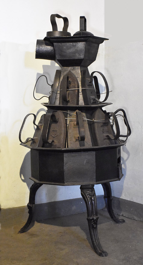 ![]() Teil 1 Wollte zuerst eigentlich nur obiges Bild zeigen ... ... dann habe ich mal ein bisschen nachgelesen und festgestellt, dass das Thema richtig interessant ist. Also gibt es die "Geschichte des Bügeleisens", die ich in größeren zeitlichen Abständen hier präsentieren will. Um 1450 fing das an mit den Flacheisen. In Süddeutschland auch "Rutscherl" genannt. Erst 400 Jahre später waren dann die Bügeleisen verbreitet. ![]() Ein sehr altes kleines sehr einfaches französisches Flacheisen. Mit einem so genannten Bügelgriff, der an das Eisen angenietet ist. Diese Eisen wurden auf der heißen Herdplatte eines Kohleofen erhitzt oder gar direkt in das Kaminfeuer gelegt. Vorsicht heiß ! Und Vorsicht schmutzig ! Vor dem Gebrauch mussten die Bügeleisen erst mal sorgfältig gereinigt werden. Sonst kann es sein, dass die frisch gewaschene Wäsche beschmutzt wird und erst mal erneut gewaschen werden muss. Von Hand, nix Maschine. ![]() ![]() Seht ihr die Bügel ... sie sind aus Metall und Metall wird arg heiß. Die Büglerinnen mussten entweder einen dicken Handschuh anziehen oder den Griff mit einem (nassen) Lappen umwickeln, um sich nicht zu verbrennen. Und die Wäsche gut mit Wasser einsprengen. Aber man ist ja erfinderisch ... viele Gießereien lieferten Klappgriffe aus Holz, die jeweils an das Modell angepasst waren. Doch dann kam das andere Problem ... ein paar Bügler und das Eisen war nicht mehr heiß genug zum Bügeln ... die Wärmekapazität war ziemlich gering. Also mussten viele Bügeleisen gleichzeitig auf dem Ofen oder im Feuer stehen und die Büglerin musste immer wieder wechseln, um weiterbügeln zu können. Aber auch da erfand man etwas ... um 1850 kamen die so genannten "Rechauds" auf ... ![]() ... gasbeheizte Spezialöfen. Zu den Bügeleisen ... die deutschen oder skandinavischen waren recht schmucklos und trugen höchstens die Initialen, aber sonst keine Verzierung. In England aber waren oft Sterne und Kronen drauf und vor allem Frankreich war kreativ ... hier zwei Beispiele: ![]() ![]() Dort wurden die Eisen schon mal mit Herzen, Blumen, Früchten und Wappen oder mit kunstvollen Initialen und Firmennamen verziert. Was ja aber nichts daran änderte, dass die Dinger arg heiß waren, aber schnell kalt wurden. Also die Aufgabenstellung: längere Wärme, kältere Finger. Da mussten dann erfinderische Köpfe so nach und nach schauen, wie man die Bügeleisen verbessern konnte. [ wird fortgesetzt ] |