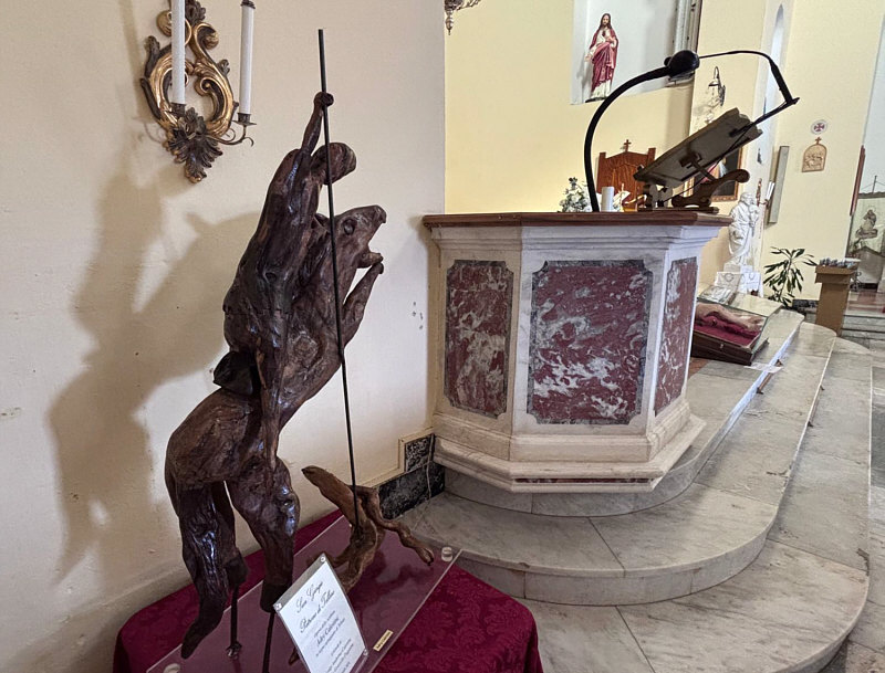 An Sonntagen gehen wir hier im Kalenderblatt in die Kirche rein am heutigen Montag gehen wir hier im Kalenderblatt aus der Kirche raus Aus dieser Kirche ... ![]() ... die gestern die Sonntagskirche war. Eine Seelenfärblerin war dort ... deswegen kann ich ein paar Bilder mehr zeigen. Wo wir sind und wer die Bilder gemacht hat ... verrate ich gerne ... aber noch nicht jetzt. Das "raus gehen" wird ganz besonders werden ... ... doch erst mal schauen wir uns ein wenig in der Kirche um. Vorher aber ein Blick von außen: ![]() An diesem Tag wurde geheiratet ... ![]() ... deswegen konnte die Seelenfärblerin an diesem Tag nur wenige Bilder machen ... ging aber am Tag darauf extra für Seelenfarben noch mal in die Kirche, um weitere Fotos zu machen. Ein Blick auf den Altar ... ![]() ... mit Blumenschmuck. Wir sind in einer Kirche, die dem heiligen Georg geweiht ist. Aus diesem Grund tötet der Heilige Georg den Drachen in dieser Kirche öfter als einmal. ![]() ![]() ![]() ![]() Viermal haben wir jetzt den Kampf gesehen ... was sagt der Papst zu so viel Kampf ? ![]() *lächel* Ja, ich weiß, der Heilige Georg kämpft ja den Kampf gegen das Böse und da ist ja schon gut, dass er das tut und auch gewinnt. Aber man darf schon über das viele Böse nachdenken, gegen das man kämpfen könnte ... ob man Siegchancen hat ? Wir schauen uns weiter in der Kirche um: ![]() Taufbecken ![]() Zwei Beichtstühle ... einer für die, die die Wahrheit erzählen und einer für die, die flunkern ;). Ja, ist ja schon gut ... wenn man viel zu beichten hat, braucht es mehr als einen Beichtstuhl. Falls sich jemand an meiner launigen Schreiberei stört ... ... immer dran denken ... der liebe Gott hat auch den Humor erfunden ;). Da schauen wir doch gleich mal nach oben ... ![]() ... und sehen den Kronleuchter. Oben ist meistens das Licht zu finden. Und Fenster ... ![]() ... in dieser Kirche gibt es Fenster ... ![]() ... sogar mit Sonnenrollo. Noch ein Blick nach oben ... ![]() ... zur Decke. Sechs Sonnenrollis und wir wissen sogar, welches die Seelenfärblerin fotografiert hat. Möglicherweise klemmt das Rollo. Und nun kommt das Rausgehen ... ![]() ... dem in diesem Fall eine besondere Magie beiwohnt. ![]() Denn die Aussicht vom Platz vor der Kirche ... ![]() ... ist einfach grandios. Wir sind in Italien ... morgen gehen wir ein bißchen in diese Stadt und morgen sage ich auch, welche Seelenfärblerin uns heute durch die Kirche geführt hat. |