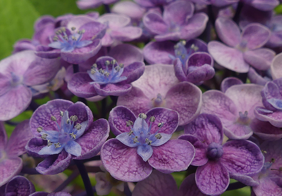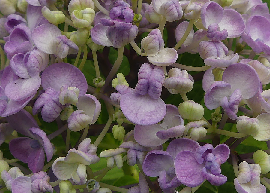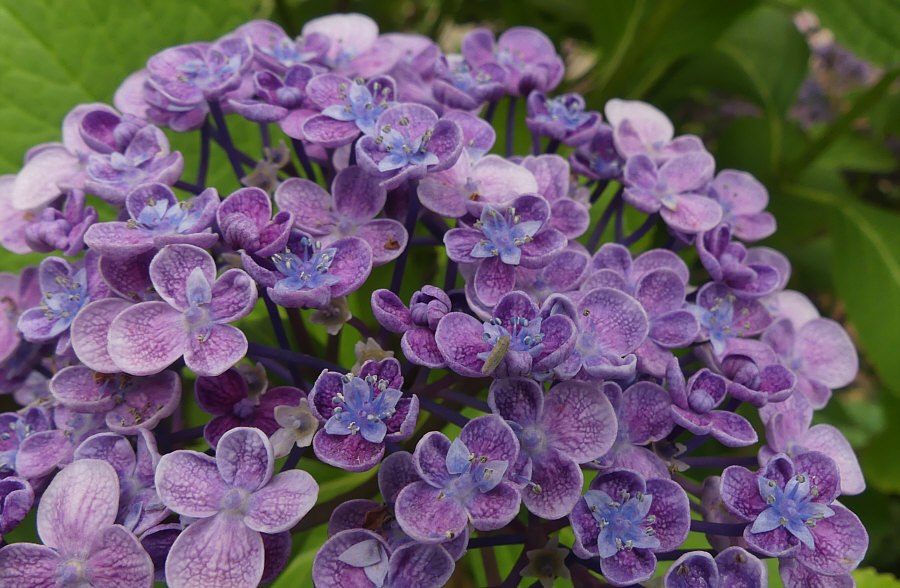 Mal heller, mal dunkler, mal kleine blaue Blütchen in der großen Blüte.