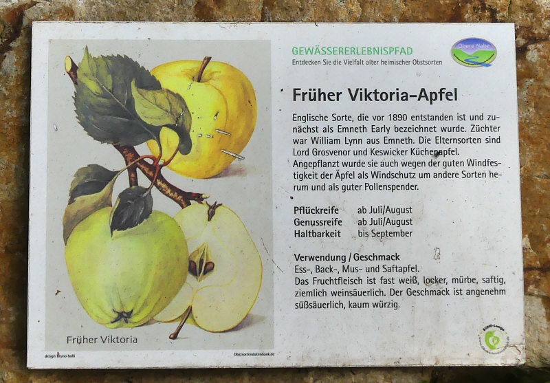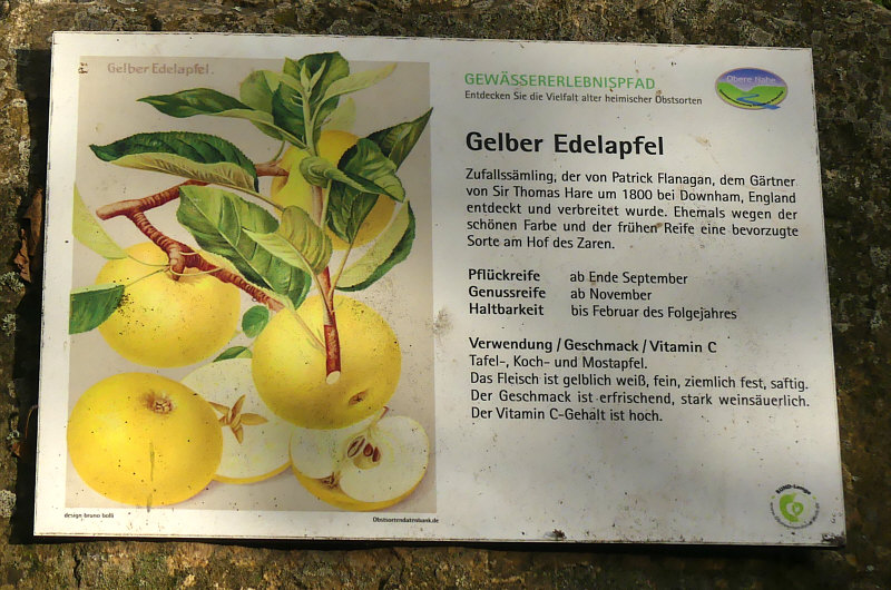 Das ![]() ... ist eine Reihe mit Apfelbäumen. Davor jeweils ein Stein mit einem Schild welche Apfelsorte das ist. Es gibt ja unendlich viele Apfelsorten ... nur merkt man im Supermarkt wenig davon. Die älteste dokumentierte Sorte des Kulturapfels in Deutschland ist vermutlich der Borsdorfer Apfel, der bereits 1170 von den Zisterziensern erwähnt wurde. Vor knapp 150 Jahren ... um 1880 rum waren weltweit mehr als 20.000 Apfelsorten (!!) in Kultur, davon allein in Preußen über 2.300 Sorten. Heute gibt es in Deutschland noch ungefähr 1.500 Sorten, von denen aber nur 60 wirtschaftlich bedeutend sind. Im Gartenhandel und bei Direktvermarktern sind derzeit nur noch etwa 30 bis 40 Sorten erhältlich – Tendenz sinkend. In den Auslagen der Supermärkte schrumpft das Angebot sogar auf nur fünf bis sechs globale Apfelsorten zusammen Nicht nur die Vielfalt, sondern auch die Qualität der Äpfel geht zunehmend verloren. Ich zeige mal ein paar der nicht so bekannten Äpfel, denn in dieser Obstbaumreihe sind mir einige neue Namen begegnet. ![]() ![]() Am Weihnachtsbaum ... interessant. Da oben steht "Pflückreife ab Oktober" ... es lagen schon jetzt, Anfang September, einige Äpfel auf dem Boden ... wir haben mal einen probiert ... ja, stimmt, die Pflückreife ist erst in ein paar Wochen ... noch nicht genießbar, der Apfel. "Leidlich guter" Geschmack ... da gibt es sicher Verbesserungsmöglichkeiten. Am besten einfach zum nächsten Baum gehen ;). ![]() ![]() Pomologe ... es gibt sogar einen eigenen Berufsstand. Interessant ist, dass der Geschmack sich gegen Frühjahr verbessert, der Apfel aber nur bis Januar haltbar ist ;). ![]() ![]() In ganz Europa verbreitet ... ich hab den Namen noch nie gehört. ![]() ![]() Gib mal der heutigen Jugend einen Apfel, der stark weinsäuerlich ist. Was für ein Gegensatz zu den auf süß gezüchteten neuen Sorten. ![]() ![]() Ich grüße alle Landespfennigmeister :). ![]() ![]() Tja, kann leider keinen Apfel zeigen, es hing keiner am Baum und es lag auch keiner darunter. ![]() ![]() Haltbar bis März, das ist doch mal gut. Oder man macht Apfelwein draus, der hält sich noch länger ;). ![]() ![]() Den Namen kannten wir ... und da haben wir auch zwei Äpfel mitgenommen. Zwei, die auf dem Boden gelegen haben ... an die Äpfel an den Bäumen sind wir bei jedem dieser Bäume nicht rangekommen. ![]() ![]() Schon ab Juli/August pflückreif ... da haben wir auch probiert. Leckerer Apfel, davon haben wir ein paar bodenliegende mitgenommen und ich esse gleich einen davon. ![]() ![]() Nicht nur geringes Aroma, auch geringe Anzahl an Äpfeln am Baum ;)). |