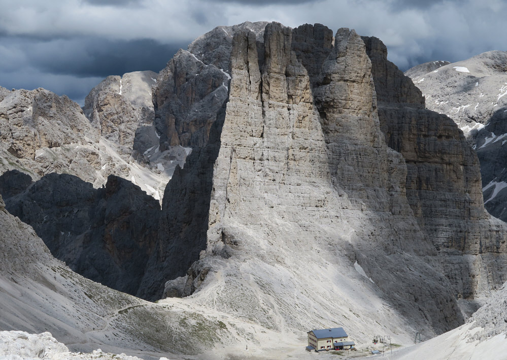 Das ... ![]() ... sind gewaltige Berge. Oder besser Felsen. Oder ganz genau: die Vajolet-Türme. Diese Türme sind eine bizarre Felsformation im Zentrum der Rosengartengruppe in den Südtiroler und Trentiner Dolomiten. Weil man ja einen Eindruck von der Größe dann am besten hat, wenn etwas auf dem Bild ist, dessen Größe man kennt ... erweitere ich das Bild mal nach unten: ![]() Das ist die Gartlhütte auf 2621 Metern Höhe. Die Hütte ist ein Stützpunkt für Klettertouren in den umliegenden Bergen, insbesondere an den gleich nordöstlich aufragenden Vajolet-Türmen, aber auch an der etwas südlich gelegenen Rosengartenspitze. In einer Viertelstunde ist man am linken Turm. Die drei Türme sind im Schnitt 2800 Meter hoch. Das sind also noch keine 200 Höhenmeter, aber die haben es in sich. Das ist die Hütte: ![]() ![]() ![]() Da kann man schon ehrfürchtig werden. Eine etwas andere Perspektive, bei der die Türme vor anderen Bergen stehen: ![]() Seht ihr da links den Weg ... da laufen die Bergwanderer und Bergsteiger und Höhenverliebte entlang: ![]() Das können auch schon mal ein paar mehr sein: ![]() Guckt mal da oben die Spitzen der Türme ... die von den beiden links ... ![]() ... genau dort wurde das nächste Bild fotografiert: ![]() |