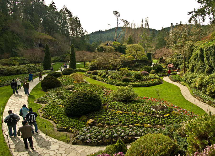 Wir sind heute im Butchart Gardens das ist ein 22 Hektar großer, privater Blumengarten im Süden von Vancouver Island (Kanada) Dort gibt es - einen Rosengarten - einen Japanischen Garten - einen Italienischen Garten - einen Mediterranen Garten und einen Senkgarten In diesem sind wir heute bzw. wir schauen auf diesen drauf. Dazu müssen wir diese Treppe ... ![]() ... nach oben gehen und haben von dort aus einen wunderbaren Blick. Und das zu allen Jahreszeiten ... ich zeige die Bilder aus verschiedenen Jahren chronologisch dem Jahreslauf nach sortiert. ![]() 2. Februar ![]() 22. März ![]() 21. April ![]() 6. Mai ![]() 26. Juni ![]() 31. Juli ![]() 5. August ![]() 16. August ![]() 31. August ![]() 29. September Dieser Garten ist ein Traum :)). |