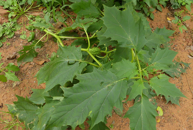 Morgen und übermorgen ist bei uns Dauerregen angesagt ... da wird es noch ein bißchen dauern, bis die Wege im Wald trocken genug sind und wir wieder dort spazieren gehen ... ... also erinnere ich mich einfach an den letzten Spaziergang im Wald. Der fand vor einer Woche statt ... ... und da hatten wir noch ganz am Anfang des Waldes eine interessante Pflanze entdeckt. ![]() ![]() An dieser Pflanze waren so stachelige Samenstände dran ... ![]() ... drei davon sind auf dem Bild zu sehen. Blüten haben wir keine gesehen, obwohl die Blütezeit bis in den Oktober gehen kann und oft gleichzeitig Samenstände und Blüten zu sehen sind. Als Ergänzung ein Bild von Wikipedia ... so sehen die Blüten aus: ![]() Die dann duftenden Blüten öffnen sich erst zur Nacht hin, sie werden hauptsächlich von Nachtfaltern besucht und bestäubt. Die Blüten duften (in der Nacht) stark süßlich-parfümartig; der von vielen als unangenehm empfundene Geruch, stammt dagegen von Stängeln und Laubblättern. Zurück zu den Samenständen ... die musste ich mir mal genauer anschauen: ![]() ![]() ![]() Hier sind sie noch grün ... später werden sie immer gelber ... ![]() ... und dann öffnen sie sich und geben den Samen frei: ![]() Mit Einsetzen der Reife öffnet sich die Kapselfrucht von oben her nur allmählich und gibt die für gewöhnlich 300 bis 500 schwarze nierenförmige Samen frei. Die Ausbreitung der Samen erfolgt durch Tierstreuung oder durch menschliche Aktivitäten. Die Kapselfrüchte sind Wintersteher, die bis ins Frühjahr hinein erst allmählich ihre vielen Samen ausstreuen. Die Samen behalten ihre Keimfähigkeit über viele Jahre. ![]() ![]() ![]() Ich hab mal meine Pflanzen-App befragt ... das ist der "gemeine Stechapfel". Gemein bedeutet hier nicht bös, sondern gewöhnlich. Ein Nachtschattengewächs, von der Gattung der Stechäpfel die häufigste Art in Europa. Alle Pflanzenteile sind giftig, besonders jedoch die Wurzeln und Samen. Der Gemeine Stechapfel enthält (S)-Hyoscyamin und Scopolamin. Bereits Mengen ab 0,3 g können Giftwirkungen wie z. B. gesteigerte Erregung, Sinnestäuschungen, Übelkeit, Pupillenerweiterung mit Sehstörungen und Atemlähmung hervorrufen. Der gemeine Stechapfel wird als Zierpflanze und als Heilpflanze verwendet. Der Stechapfel ist auch als Rauschdroge beschrieben worden, so das Rauchen getrockneter Blätter, Trinken von Teeaufgüssen, Kauen der Wurzel. Der Gemeine Stechapfel ist ein Kosmopolit und wächst in vielen Ländern. In manchen Ländern Europas ist er Neophyt, also ungebeten häufig wachsend und wird dort auch bekämpft. Bei uns wächst er nicht so arg ... er ist nämlich wärmeliebend. Und kommt häufig auf Ruderalflächen vor, die direkt von der Sonne beschienen werden, die also frei sind von beschattend wirkender sonstiger Vegetation sind. Deswegen auch am Waldrand und nicht mitten im Wald. |
