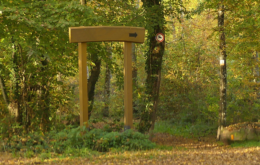 Wir laufen hier entlang ... ![]() ... und kommen an diesen Platz: ![]() Da vorne ... ![]() ... steht ein hölzernes Hinweisschild. ![]() Was da drauf steht, habe ich retuschiert, denn heute ist Ratetag im Kalenderblatt. Was könnte wohl auf diesen Schild stehen ? Wohin mag uns dieser Pfeil führen ? |