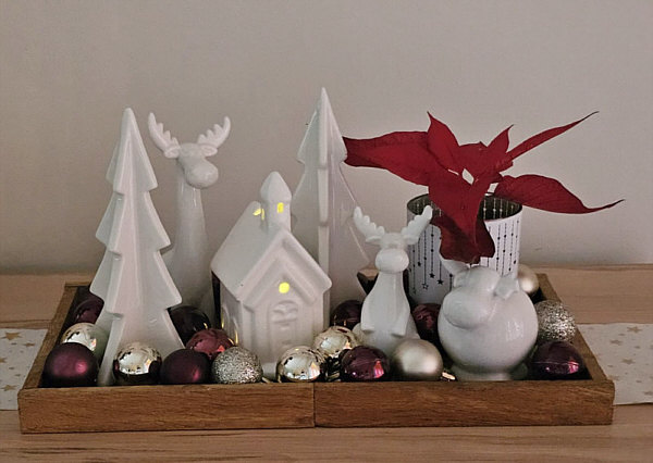 Holztablett Nochmal die Holztablett-Parade von Elfi S. vom 1.-4. Advent ... ... und so sah es an Weihnachten aus: Für Silvester wurde erneut umdekoriert: weiter