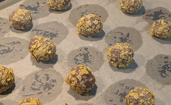 noch in grob zerkleinerten Cornflakes gewälzt.
