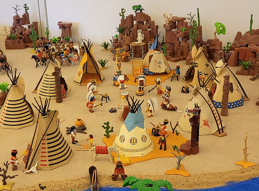 1974 ... war das ... und es begann mit Rittern, Indianern und Bauarbeitern. 7,5 cm groß. Aus Kunststoff. Menschenähnliche Spielfiguren. Diese wurden ein Welterfolg. Im Schloss Bruchsal ... ![]() ... sind viele davon zu sehen. Denn dort gibt es seit dem 25. Oktober 2025 (und noch bis zum 12. April 2026) die Ausstellung "Playmobil Kinderträume - Zeitreise für Familien". Satu war dort, hatte Bilder davon im Status und ich habe natürlich gleich "schick mir" gerufen ... das war Ende Oktober ... und nun ist es soweit, dass ich Euch mitnehme in eine kleine Reise in die Phantasiewelt der Kinder. Es ist unglaublich, in welcher Vielfalt es diese Figuren gibt und welche tollen Themenwelten man damit erschaffen kann. Nehmt Euch Zeit ... die Bilder sind voller liebevoller Details. Ein paar davon schreibe ich drunter, aber es gibt noch viele weitere zu entdecken. ![]() So sieht eine Figur aus ... das ist der Schornsteinfeger. ![]() Weihnachtsmann, Christkind und Nikolaus ganz stilecht. ![]() Weihnachtskrippe und die heiligen drei Könige. ![]() Fischerboot mit Möwen. ![]() ![]() Winterfreuden. ![]() Im Zirkus Romani. ![]() ![]() Im Zoo. WWF hilft. ![]() Rast auf der Alm mit vielen Tieren. Mit leckeren Schmankerln und Akkordeon. ![]() Und Weißwurst, Brezeln und Bier. ![]() ![]() Bauernmarkt. Mit kleinen Küken. ![]() Der Eimer mit den Golddukaten ist umgefallen, die Kinder freuen sich. ![]() So unglaubliche viele schöne Details. ![]() ![]() Auf dem Bauernhof. ![]() Die Mäuse haben den Käse entdeckt. Die Katzen haben die Mäuse entdeckt. ![]() Ritterburg. ![]() Im Mesozoikum ärgert der Skorpion den Dino. ![]() Viele verschiedene Dinos sind geschlüpft. ![]() Krokodile gibts auch. ![]() Die Neandertaler haben Fackeln und gehen Holz hacken ... die Tiere gehen mit. ![]() In der Oase gibts einen kleinen Seerosenteich. ![]() In Ägypten. ![]() Das Kamel bekommt sein Wasser. ![]() Im Wald bei den Wildschweinen. ![]() Eine Eule und Fliegenpilze gibts auch. ![]() Wo sind wir denn hier gelandet ? ![]() Bei Asterix und Obelix und den Wikingern. ![]() Hinten am Fluss im Wald. ![]() Der wilde Westen und die Indianer dürfen natürlich nicht fehlen. ![]() ![]() ![]() Sogar Autos gibts von Playmobil. Die Autos der Ghostbusters, dann das A-Team, James Bond, Knight Rider, Zurück in die Zukunft und Jurassic Park. Und das alles sind Playmobil-Figuren ... es ist der Wahnsinn ... :)). |