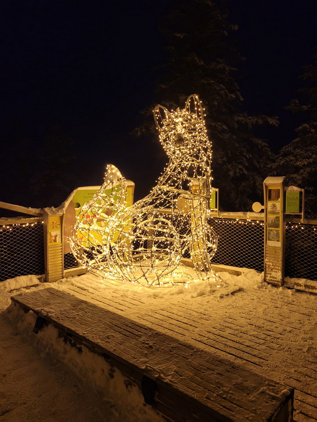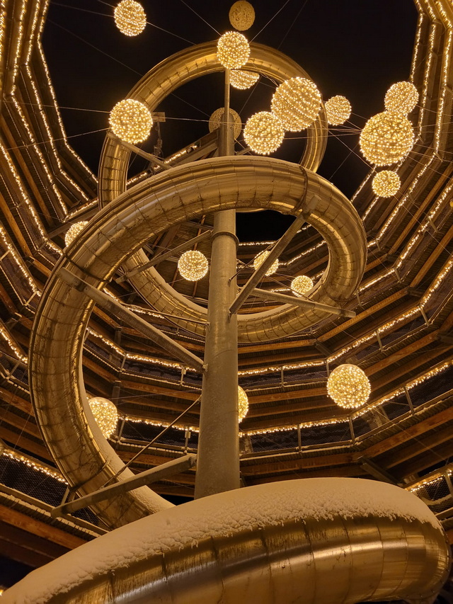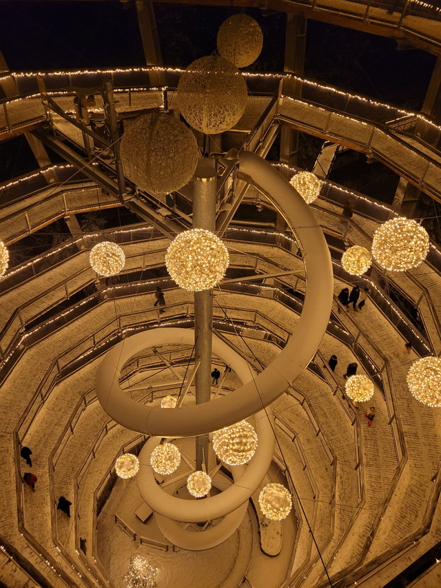 Baumwipfelpfad im Winter und das bei Nacht Wir sind im Schwarzwald im Bad Wildbad. Der Baumwipfelpfad befindet sich auf dem Sommerberg und führt über 1,2 km in bis zu 20 m Höhe durch den Wald. Es gibt einige Lern- und Erlebnisstationen und am Ende kommt man zum 40 m hohen Aussichtsturm, von dem aus man einen Rundumblick auf den Schwarzwald hat und, wer mag, kann auf der Tunnelrutsche im Inneren 55 m in die Tiefe rutschen. Von Ende November bis Mitte Februar findet dort ein Lichterzauber statt. Der Pfad und der Turm sind beleuchtet und es gibt auch einige tierische Lichtobjekte zu sehen. Pusteblume war dort ... sie hat dafür extra einen Tag mit Schnee ausgewählt, weil dieser eine ganz besondere Atmosphäre schafft. ![]() ![]() ![]() ![]() ![]() ![]() ![]() ![]() ![]() Die Tunnelrutsche im Inneren, die 55 m in die Tiefe geht: ![]() ![]() |