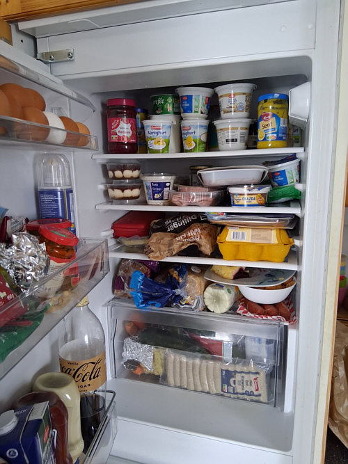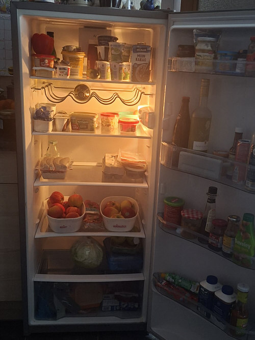 Willkommen beim ersten Bildersamstag im Februar. Die Überschrift in diesem Monat: Indoor-Fotografie. Für jeden Samstag gibt es eine neue Aufgabe. Die erste Aufgabe für heute: Öffne deinen Kühlschrank und mache ein Foto. Gerne ein Detail, etwas Ungewöhnliches, besondere Perspektive, etwas mit Licht oder was immer dir gerade in den Sinn kommt. 14 Seelenfärblerinnen haben mitgemacht ... ... vielen lieben Dank dafür :)). ![]() Schnecke schreibt dazu: Wegen Überfüllung geschlossen - wir haben oft randvollen Kühlschrank bei vier erwachsenen Personen mit unterschiedlichen kulinarischen Vorlieben :). ![]() Therese schreibt dazu: Unser Kühlschrank nach morgendlichem Einkauf und nachdem mein Mann seinen mittäglichen Salat zur späteren Verwendung auf dem zweiten Glasfach deponierte. ![]() Mira I schreibt dazu: Heute fotografierte ich den Teil der Innentür meines Kühlschranks. Das "besondere" ist die "Notfalldose". Sie beinhaltet wichtige Info für Ersthelfer, sollte mir - die alleine lebt - etwas passieren. An der Külschranktür außen befindet sich ein kleiner Aufkleber mit dem Hinweis, das im Kühlschrank eine Notfalldose zu finden ist. ![]() Angelika V. schreibt dazu: Die Frühstücksecke in meinem Kühlschrank. Ingwershot von meinem Schwiegersohn zubereitet und darunter selbstgemachter Joghurt. ![]() Xenophora schreibt dazu: Ich gehe ja mit dem Rollator zum Einkaufen um die Ecke ins Rewe und meine Nachbarin begleitet mich. Bei schlechtem Wetter fährt mich ihr Mann mit dem Auto. In der viereckigen Dose ist Apfelbrei von meiner Freundin. ![]() Ingrid S. schreibt dazu: Ich war heute beim Einkauf, ganz oben liegt Putenfleisch und Hühnerklein (für den nächsten Tag), anderes ist eher auch Vorrat dabei. Butter, Milch und Käse und Frischkäsesorten müssen aber immer Kühlschrankinhalt sein. Diverse Öle und Essige habe ich außen stehen, also nicht im Kühlschrank. ![]() Christine L. schreibt dazu: Hier zeige ich mein oberstes 0-Grad-Fach im Kühlschrank. Ich nutze es für Gemüse, Salat und Beeren. Das alles hält einfach länger frisch und es heisst, auch die Vitamine bleiben länger erhalten. ![]() Lieschen schreibt dazu: Eben von der Fotoaktion gelesen und ich dachte, da mache ich doch mal wieder mit. So war das heute eine Abwechslung, ich habe meinen Kühlschrank geknipst, war das kein Scherz von dir ? Egal, ich habe es getan. ![]() Nora schreibt dazu: Mein Lieblingsjoghurt ist immer im Kühlschrank, für Frühstück, in die Suppe, am Abend usw.. ![]() Fragola schreibt dazu: Anbei mein Kühlschrankfoto. Es ist meine selbstgemachte Knoblauchpaste. Die ist ganz praktisch, da ich nicht jedes Mal, wenn ich Knoblauch haben will eine Zehe schnibbeln muss. Außerdem mag mein Vater keinen Knoblauch, dann kann ich mir im Teller selber noch was druntermischen. ![]() Christine b schreibt dazu: So sieht unser Kühlschrank am Donnerstag aus, am Freitag machen wir immer Wocheneinkauf, dann kommt noch einiges an Gemüse, Fleisch und sonstigem dazu. Der Kühlschrank versieht schon 15 Jahre brav seinen Dienst. ![]() Carmen J. schreibt dazu: Mein Kühlschrank, so wie er immer eingeräumt ist, nur wenn ich einkaufen war, ist er etwas voller. Ganz oben viele Joghurts, damit sie bis zum nächsten Einkauf reichen. In der Tür alle griffbereiten Sachen, z.B. Senf, Majo, Marmelade, Ketchup und Diabetesspritzen. Und in den unteren Fächern sind Äpfel und Gemüse. Ich mag die Äpfel aus dem Kühlschrank, sie sind so schön kühl und frisch. Ganz unten ist das Nachschubfach zum Auffüllen von Wurst und Käse usw.. ![]() Liane schreibt dazu: Geht es euch nicht auch so, wenn der Kühlschrank frisch gereinigt wurde, all die Sachen, die sich immer ganz hinten verstecken und vor sich hin ablaufen, entsorgt werden, dann macht es jedes Mal beim Öffnen der Kühlschranktür ein freudiges Ahhh, ist der jetzt wieder sauber und aufgeräumt. Danke Engelbert für diese Mitmachaktion, denn jetzt kommt der Gedanke nicht mehr auf, dass ich den Kühlschrank auch mal wieder ausmisten müsste. ![]() Margot schreibt dazu: Hier einen Blick in meinen entgegenkommenden Kühlschrank, der Schubladen zum ausziehen hat. Darin meine geschmackliche Neuentdeckung: Joghurt Erdbeer Panna Cotta :). |
