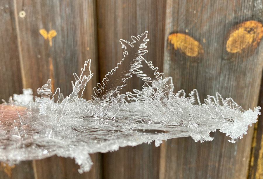 Eine kleine Runde Seelenfärblerbilder die ich heute hier im Kalenderblatt zeige, weil da Bilder dabei sind, die ich größer zeigen will. Ich fange mal an mit den "Brieger Gänsen". Ich musste da auch erst mal nachlesen und habe erfahren: "Brieger Gänse" sind ein seltenes Naturschauspiel auf der Oder, bei dem kreisrunde Eisschollen bei starkem Frost flussabwärts treiben. Sie entstehen aus am Grund gebildetem Grundeis, das aufsteigt, sich an der Oberfläche dreht und dabei wächst. Ihr Name leitet sich von der Stadt Brieg (Brzeg) ab und der Tatsache, dass das Geräusch kollidierender Schollen an schnatternde Gänse erinnert. Eine Bekannte von ErikaX, die in Frankfurt an der Oder wohnt, hat diese Fotos gemacht: ![]() ![]() Es bleibt weiß und kalt ... wir ziehen weiter in den Garten von Sonja-S in Hamburg: ![]() ![]() Es ist gar nicht selbstverständlich, dass dort oben in Hamburg Schnee liegt. Und schon gar nicht, dass das immer wieder passiert und dass er länger liegen bleibt. In diesem Garten gibts auch eine Regentonne: ![]() Dort hat sich innen am Rand Eis gebildet, das weiter gewachsen ist und ganz tolle Formen gebildet hat: ![]() ![]() Wir dürfen auch einen Blick in den Garten zur blauen Stunde werfen: ![]() Ganz im Südwesten, Nähe Kaiserstuhl, sieht das ganz anders aus ... ... dort liegt kein Schnee und es hatte sich auch mal die Sonne gezeigt. Elli K. hat das genutzt und zwei Gegenlicht-Fotos gemacht: ![]() ![]() Den Abschluss macht ein Bild von Sylvi ... ... sie sagt "habe heute mal mit Makro am Handy gespielt": ![]() |
