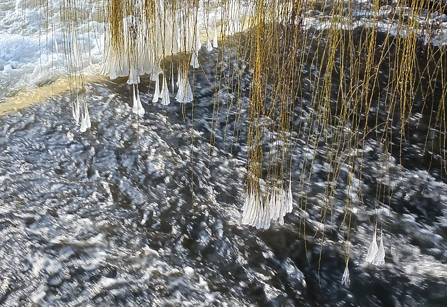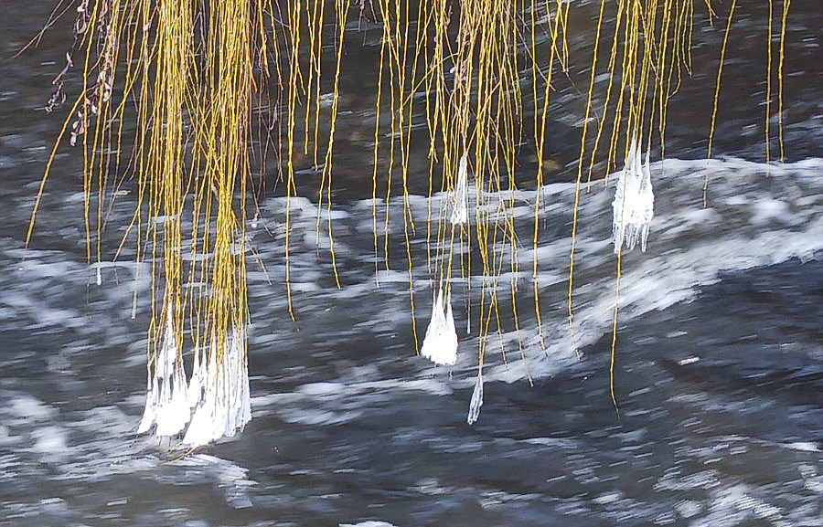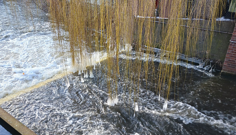 Eis in besonderer Form ... ... könnte die Überschrift heute sein. Angelika V. hat da zweimal kalte Eiskunst entdeckt und man ist doch erstaunt, wie kreativ die Natur im Winter ist :)). Zuerst die Eisfinger vom Dach: ![]() ![]() Und dann gibt es da die Zweige, die herunterhängen. Knapp überm Wasser ... und so passiert es, dass diese sich Schuhe aus Eis anziehen: ![]() ![]() ![]() ![]() ![]() |