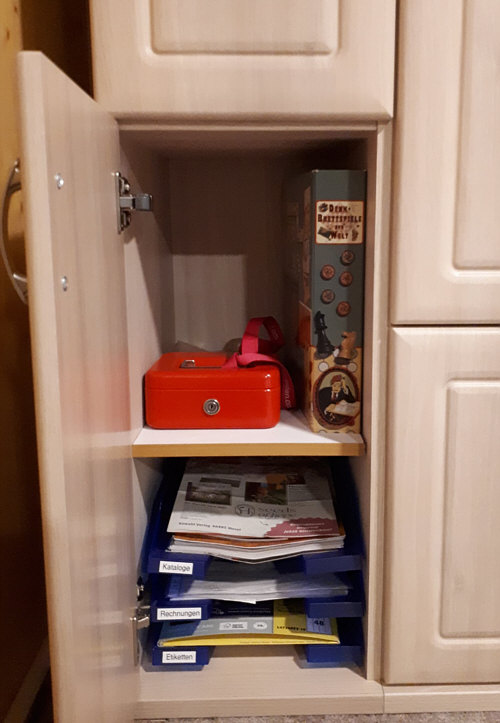 Willkommen bei der dritten Bilder-Mitmachaktion Teil 2 Die Überschrift: Indoor-Fotografie. Es gibt immer wieder eine neue Aufgabe. Die Aufgabe war: "fotografiere im Wohnzimmer deinen größten Schrank" mit dem Zusatz "Schicke mir das Bild ... ich werde dich dann bitten, ein ganz bestimmte/s Fach/Schublade zu öffnen und mir zu zeigen und zu sagen, was dort drin ist." Sensationell ... von den 16 Seelenfärbler/innen, die mir ein Schrankbild geschickt hatten, haben fast alle auch das Fach oder die Schublade geöffnet und zeigen, was drin ist. Bis auf eine Seelenfärblerin, die meinte, ich hätte das falsche Fach ausgesucht, dort wären nur Zeitschriften und alte Kataloge drin ... hey, es gibt doch kein falsch oder richtig, sondern nur Glück und Pech und Zufall, welches Fach ich spontan gerade ausgesucht hatte. Aaalso ... ich darf nun 15 Schränke auflösen ... freu :)). Meinen eigenen Schrank hatte ich auch im Tagebuch gezeigt ... ![]() ... und gebeten, zu kommentieren, welches Fach ich öffnen soll. Ich hab dann unter allen Kommentaren einen ausgelost ... ![]() ... und der Kommentar Nummer 2 war dieser: ![]() Und, oh so sorry ... es tut mir wirklich leid ... diese Schublade ... ![]() ... ist leider leer. Da waren bis Ende Januar die Weihnachts-Bücher und Zeitschriften drin, die habe ich, weil ich doch nicht reingeschaut habe, dann rausgenommen und an Beate zum Sichten und Aussortieren weitergegeben. Und so ist die eine Schublade mit den zwei Fächern im Moment leer, so lange, bis ich mich entschieden habe, was ich dort nun reinlege. Falls jetzt jemand denkt ... ganz sicher hätte ich so lange eine Zahl generieren lassen, bis diese Schublade dran ist ... ah Schmarrn ... ich hab kein Problem damit, den ganzen Schrank mit geöffneten Türen zu zeigen: ![]() Jetzt aber zu den Seelenfärbler-Schränken ... zuerst der Schrank, dann die Auflösung. Und jetzt sogar mit Namen. 1 ![]() ![]() Schnecke schreibt: "Eine typische Krusch-Ecke :)" --- 2 ![]() ![]() Xenophora schreibt: "Es sind meist nur Teller und Schüsseln. Und ein kleiner Glaskrug, den mir mal eine Nachhilfeschülerin geschenkt hat. Besonders hänge ich noch an dem Wagenfeld Salz- und Pfefferstreuer aus der WMF, den ich mir vor 60 Jahren mal selbst gekauft habe." --- 3 ![]() ![]() Ladybird schreibt: "Bitteschön, die "Kerzenschublade" - Teelichter, Haushaltskerzen, Pyramidenkerzen, Weihnachtsbaumkerzen, Geburtstagskerzen, Teelichthalter, Streichhölzer ... und Holzbuchstaben zum Basteln". --- 4 ![]() ![]() Liane schreibt: "der Schrank war mal der Kleiderschrank meiner Urgroßmutter. Ich hab dann Einlagebretter montiert und ihn zum Bücherschrank umfunktioniert. Er platzt bald aus allen Nähten, die Bücher stehen schon in Zweierreihen." --- 5 ![]() ![]() Therese schreibt nix weiteres dazu ... ist vielleicht selbsterklärend ;). --- 6 ![]() ![]() Christine R schreibt auch nix, aber man sieht, dass das das Geschirrfach ist. --- 8 ![]() ![]() ![]() ![]() Karen schreibt: "da hast Du Dir mit sicherem Griff das langweiligste Fach im Schrank ausgesucht! In der Schublade liegen Servietten, ein Päckchen mit Teelichten und Schmuckbänder für verschiedene Anlässe. Von den 6 Bändern habe ich 4 selbst bestickt, nur die Weihnachtsbänder sind gekauft. Die Bänder kommen auf den festlich gedeckten Tisch - drunter natürlich ein Tischtuch, das dann "nicht" gemustert sein sollte. --- 9 ![]() ![]() Greta schreibt: "da hast Du Dir ja die versteckteste Schranktüre ausgesucht, ich musste erst mal "Möbel schieben", um hinzukommen. In dem Fach stehen Schalen und Vasen, die ich nur noch sehr sehr selten nutze. Dahinter sind einige Schallplatten verborgen, wie es aussieht sind es Opernaufnahmen. --- 10 ![]() ![]() Lieserl schreibt: "Links sind Tischdecken. Für Wohnzimmer und Esszimmer, darum unterschiedliche Formate. Rechts unten Servietten und oben eine FC Bayern-Fahne und drunter eine neue Freistaat Bayern Fahne. Beide für den Fahnenmasten im Garten. Wenn jetzt wärmer wird, kommt die FCBfahne wieder raus. Und wenn die Saison vorbei ist, die Freistaat Bayern Fahne" --- 11 ![]() ![]() Ingolf: "... da hast Du eine gute Wahl getroffen, dieses Fach ist vorzeigbar ;-). Im Fach befinden sich überwiegend Sammeltassen, alles Erbstücke unserer Mütter. Sie sind nicht allzu oft im Einsatz, aber eine größere Kaffeetafel mit weißer oder einfarbiger Tischdecke und den Tassen sieht schon hübsch aus. Der Schrank stammt übrigens noch aus DDR-Zeiten, eine Arbeit unseres ortsansässigen Tischlers, auf die wir 10 Jahre warten mussten." --- 12 ![]() ![]() Gudrun aus der Oberlausitz schreibt: "Das ist mein Büchertisch-Schrank. In unserer Gemeinde bin bzw war ich für den (Weiter-)Verkauf von Büchern, Karten, CDs uä zuständig. Deshalb hab ich jede Menge Kataloge von verschiedenen Buchverlagen. Außerdem müssen die Rechnung u Gutschriften u das eingenommene Geld irgendwo gelagert werden. Dafür ist hier ausreichend Platz." --- 13 ![]() ![]() Mira I schreibt: "Da rufen viele Papiere: "Hol mich hier raus" !!!!! - Vielleicht kannst du das Flehen hören ..." --- 14 ![]() ![]() ![]() Onyxia schreibt: "Normal ist das meine Deko-Schublade, da steht sonst noch die Glasschale vom Couchtisch drin. Jetzt müssen die "Restchips" von meinem Geburtstag noch mit rein ..." --- 15 ![]() ![]() Belo schreibt nix dazu ... hat aber noch dieses Bild beigelegt: ![]() Zur Info ... die Kronjuwelen-Konfirmation feiert man 75 nach der eigentlichen Konfirmation. --- 16 ![]() ![]() Lieschen schreibt: "wer A sagt muß auch B sagen ... nun kommt mein Schrank, deine ausgewählte Türe zum Anschauen nun innen. Da ich schon immer gerne und viel fotografiert habe, siehst du meine Alben, damals wurde ja nur mit Film geknipst und dann die Bilder ins Album. Hier von links die ersten, ungefähr 1/4 siehst du. Die werden noch oft raus geholt und nachgeschaut, was war wann ? weißt du noch ? Ist so sehr praktisch, ob man die digitalen Bilder auf dem Handy, sollte mal was bestimmtes gesucht werden, 