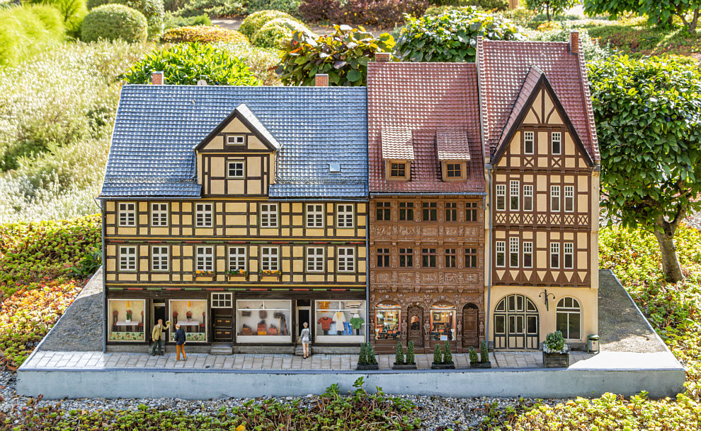 Im Miniaturenpark Dieses Bild ... ![]() ... hatte ich mal im Abreißkalender gezeigt, das ist das Rathaus von Wernigerode im Harz. Als Miniatur im Maßstab 1:25. Wir sind im "Miniaturenpark Kleiner Harz" im Bürgerpark Wernigerode. Dort gibt es auf einer Fläche von 1,5 ha detailgetreue Nachbildungen bedeutender Bauwerke und Attraktionen der Harzregion. Alle mit viel Liebe zum Detail gefertigt. Ich wollte schon, seit ich dieses Bild gesehen haben, weitere Bilder von diesem Park zeigen ... heute ist es soweit :). Erst mal ein Bild mit Menschlein drauf ... ![]() ... damit ihr Euch die Häuser von der Größe her vorstellen könnt. Nun ein paar der Gebäude: ![]() Schloss Wernigerode ![]() Ehemalige Agraringenieursschule ![]() Der Bahnhof "Drei Annen Hohne" der Brockenbahn ![]() Maschinenfabrik Carlswerk ![]() Der Dom in Halberstadt ![]() Westportal des Doms zu Halberstadt ![]() Ensemble Café Wien in Wernigerode ![]() Welch tolle Details ... und wie klasse die Bepflanzung da reinpasst. Und auch die Bäumchen sind maßstabsgerecht. ![]() Jagdschloss Spiegelberge ![]() ![]() Es ist der Wahnsinn. ![]() Ensemble Krummelsches Haus in Wernigerode Da muss ich auch die Details zeigen: ![]() |