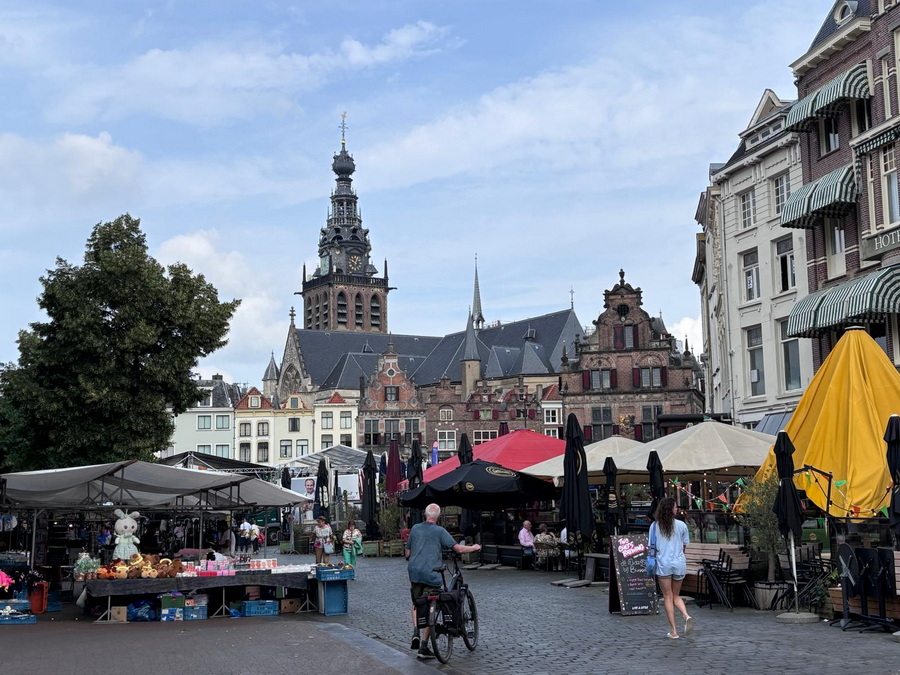 Flusskreuzfahrt MS Annika mit Margot, Teil 8 (Teil 1, Teil 2, Teil 3, Teil 4, Teil 5, Teil 6, Teil 7) Margot zeigt und schreibt: ![]() Montag morgen, 7 Uhr ... es will gar nicht hell werden, obwohl der Vorhang jetzt immer halb geöffnet ist?! Wir liegen in Nijmegen auf der dunklen Seite des Anlegers. ![]() Ich drehe wieder eine kleine Runde ohne an der großen Führung teilzunehmen, sodass meine Reisebegleiterin nicht zu lange alleine ist. ![]() ![]() Bilder von der Jakobuskapelle. Hier beginnt die Etappe Nimwegen-Köln des berühmten Pilgerweges. ![]() Empfehlung als typisches Mitbringsel, sowie Delfter Blau Keramik, Holz-Klompen oder Karamellwaffeln. ![]() Draußen sitzen war am Vormittag noch etwas ungemütlich. Aber diese Sitzgruppe hatte auch so eine gemütliche, geborgene Ausstrahlung. ![]() Die Waag, 1612 erbautes Gebäude mit Stadtwaage. ![]() Ein Blick zum Grote Markt. ![]() Wer's glaubt ... ;). ![]() Der Markt von der anderen Seite. ![]() Ein Kriegerdenkmal, das man bei uns nicht sieht. ![]() Erkennst du, was dort in der Kastanie hängt? ![]() Bei dieser Einkaufsstraße auf zwei Ebenen erkennt man es besser: Gladiolen. Die Gladiole, Zeichen der heiligen Anna, steht für Stärke und Sieg. Nijmegen ist die eine der ältesten Städte der Niederlande und benennt die St. Annastraat einmal im Jahr in die Via Gladiola. Hier werden die Teilnehmer des viertägigen Nijmwegen-Marsches angefeuert und wie einst Gladiatoren (gladius = Schwert= schwertartige Form der Galdiole) begrüßt. Zum 107. Mal fand die Veranstaltung dieses Jahr statt, leider einige Tage nach unserem Zwischenstopp. Bestimmt ein beeindruckendes Spektakel. An vier Tagen werden Etappen von 30, 40 oder 50 km gelaufen und es sind 50000 Teilnehmer aus 70 Ländern angemeldet. An mir ist dieser Lauf bisher vorbeigegangen. ![]() Ein schickes Brauereigebäude. ![]() Der Duft hat mich angelockt, bevor ich diese Pracht sehen konnte. ![]() Die Fluttore sind ein wichtiger Schutz vor Überschwemmungen. ![]() Nach diesem Gebäude musste ich etwas länger suchen in den verwinkelten Gassen. Erkennst du an den Fenstern, was es ist? Und die Lutherstraße führt daran vorbei. Er hätte sich als Antisemit im Grabe umgedreht, wüsste er davon. ![]() Die Synagoge von der Vorderseite. ![]() Ein Fenster mit Perlenschnüren und Perlenketten statt Gardinen. Letztere sind in den Niederlanden nicht populär, weil es eine Gardinensteuer gab. Typisch ist der offene Blick ins Haus und zwei gleiche Dekorationselemente auf der Fensterbank. Das wird heute (zumindest in den touristischen Ecken) seltener. Häufig versperren Plissees den Einblick in die gute Stube. ![]() Zurück an Bord eine kleine Stärkung und Abfahrt um 14 Uhr. ![]() Herrliche Natur mit Herden von Büffeln, Schafen und Pferden beobachten wir, während das Schiff sanft dahin gleitet. ![]() Am Nachmittag gab es Informationen zur Ausschiffung und natürlich Kaffee und Kuchen. Dann umziehen für das Galadinner. Auch die Serviette hat sich herausgeputzt. ![]() Von den vielen Gängen nach Aufmarsch und Würdigung der Crew verwöhnte uns die Küche mit zahlreichen Gängen und einem hübsch dekorierten Dessert. Das zeitgleich für 162 Reisende aufzutragen ist ein Meisterwerk. ![]() Adieu, Holland ! ![]() Letzte Momente im Bett liegend genießen: so ruhig die Landschaft vom Wasser aus dahin ziehen zu sehen gefällt mir. ![]() Morgens um 8 in Köln. Mit diesem Ausblick begann und endete unsere Reise. |