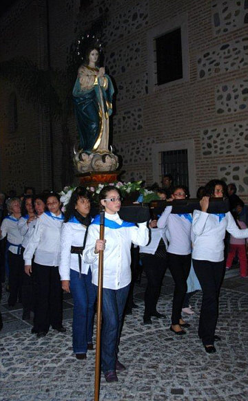... tragen im Wiegeschritt gehende Frauen eine Marienfigur durch die Straßen:
