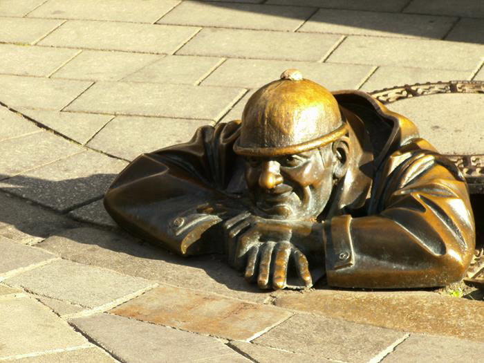 der aus dem Gulli schaut und der sogar ein eigenes Straßenschild bekommen hat:
