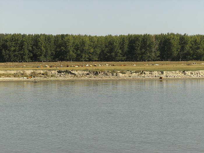 Hier grasen Kühe, Schweine, trinken oder baden in der Donau.