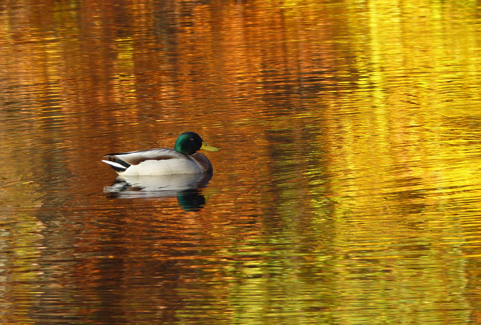 Es war an einem sonnigen Novembertag an einem See. Die noch belaubten Bäume leuchteten in der Sonne und spiegelten sich im Wasser. [Kommentieren]