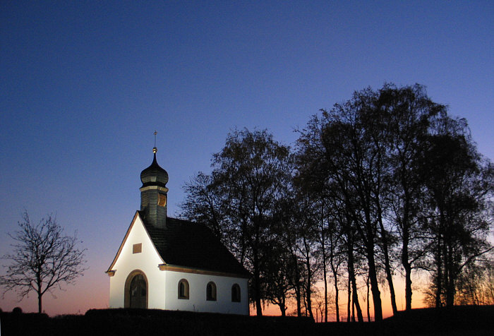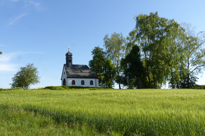 Die Kapelle liegt in einer wunderschönen Landschaft mit weiten Blicken.