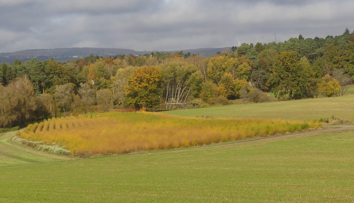 Das ist ein Spargelfeld, das in Herbstfarben leuchtet.