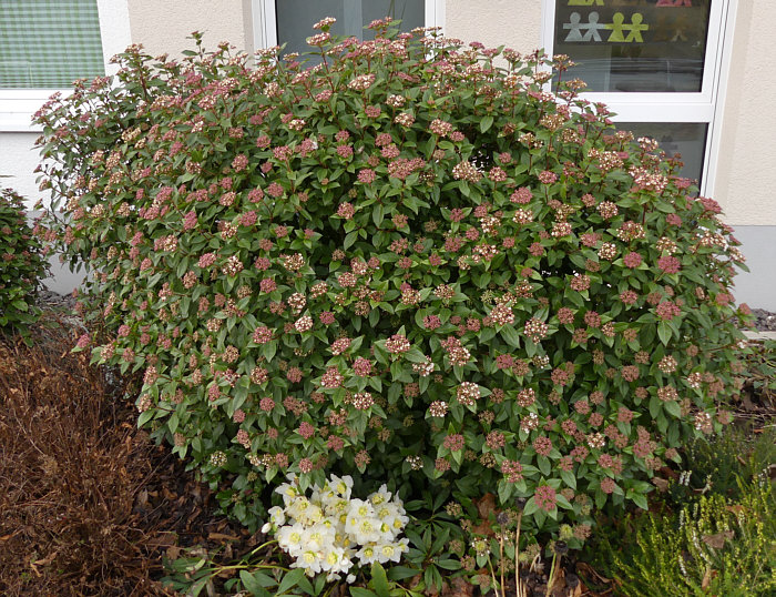 Das ist eine Skimmie ... Skimmia Japonica ... normalerweise blüht sie erst ab