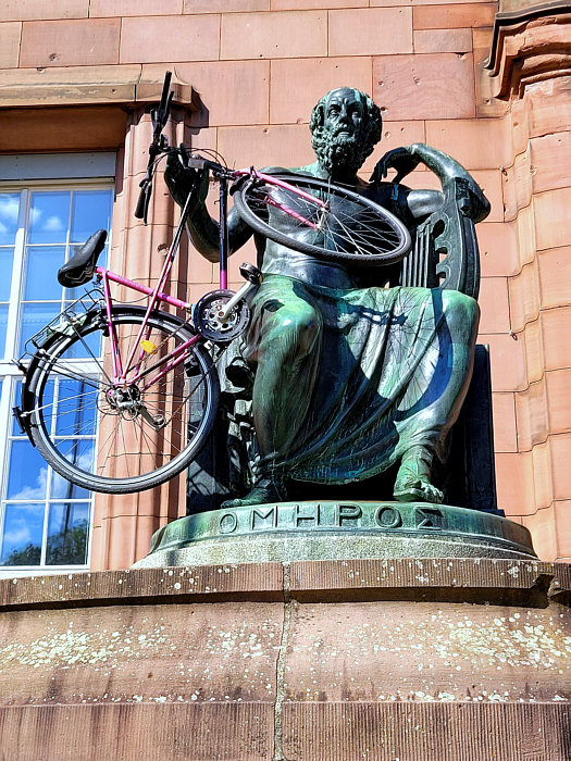 vor dem Kollegiengebäude I vor der Universität in den Armen von Homer.