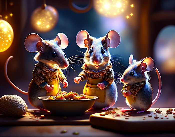 Die Mäuse sind die Stars. Kochen in einer kleinen Küche."