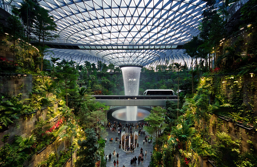 ein Gebäude auf dem Gelände des Flughafens Singapur.