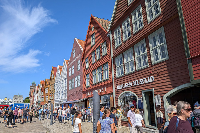 mit den alten Holzhäusern der Handelskontore.