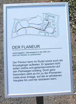 Aha, ich bin ein Flaneur ... Ich bin im Rudel oder Einzelgänger, tagaktiv und ich stolziere Dann flanieren wir mal schön auf die grüne Wiese ...