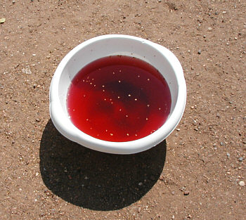 wer jetzt enttäuscht sein mag, der hat einfach nur recht ... Ein weißer Plastik"dippe" [ = pfälzisch ] und darin eine rote Brühe ... Und so allein steht er da im Weg ... oder doch nicht ??